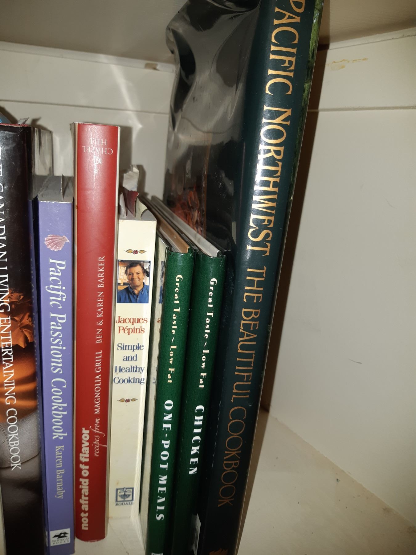 Assortment of cook books, wrought iron book stand. Bring packing supplies and pickup at 9 am