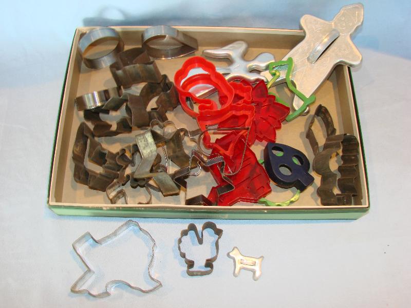 Cookie cutters, inclds.Tx., boot, scottie dog. Apprx. 30 cutters