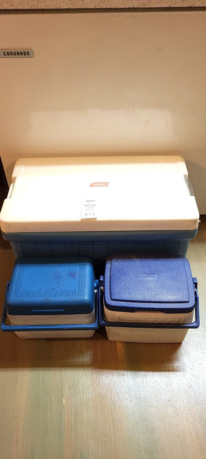 2 Coleman coolers and Rubbermaid cooler. Pickup at 10 am