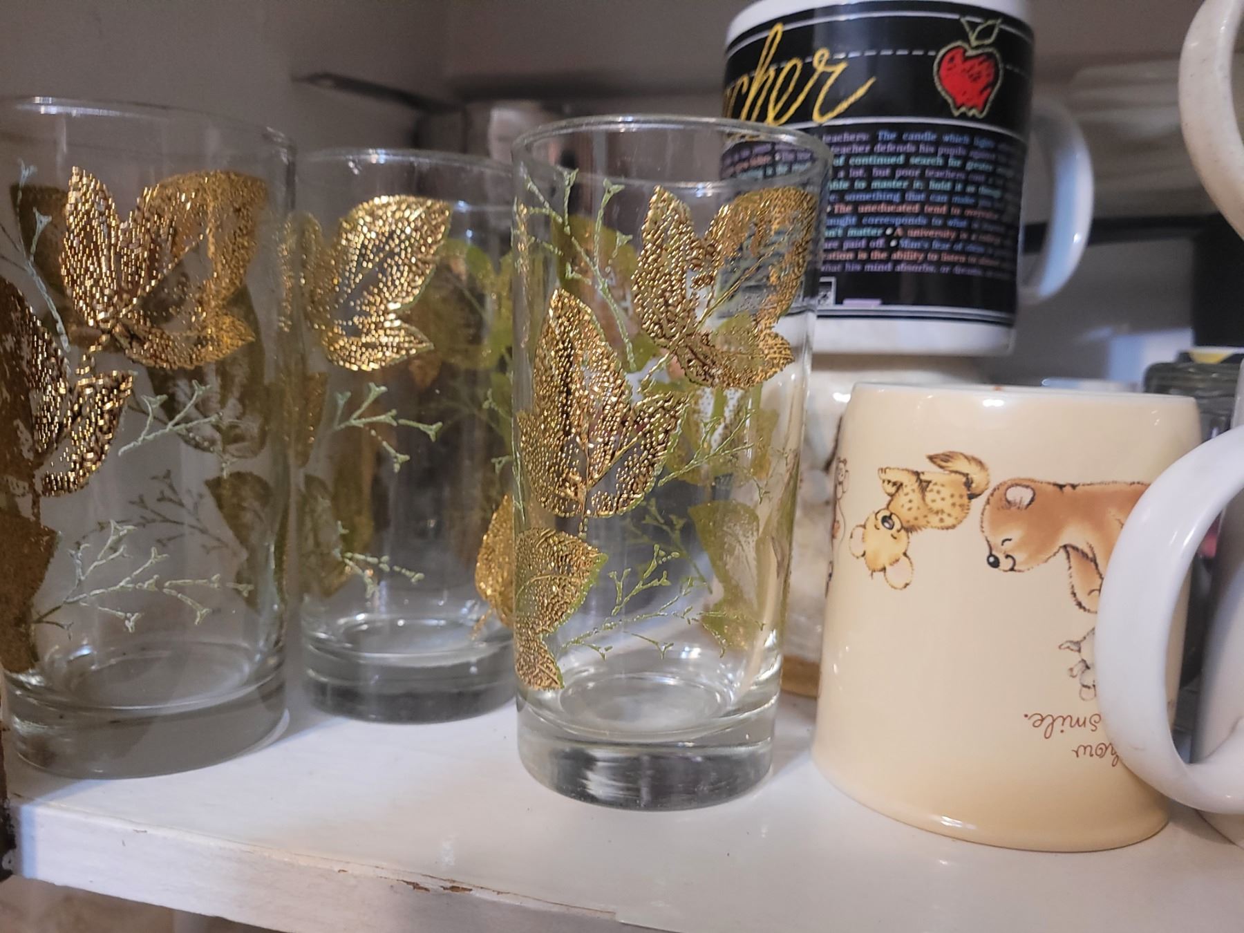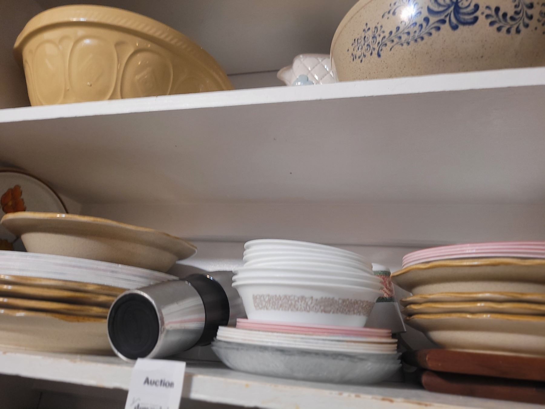 Vintage Gripstand bowl, set of Corelle bowls, plates, mugs, vintage drinking glasses, more. Bring packing materials. Pick up 9-10