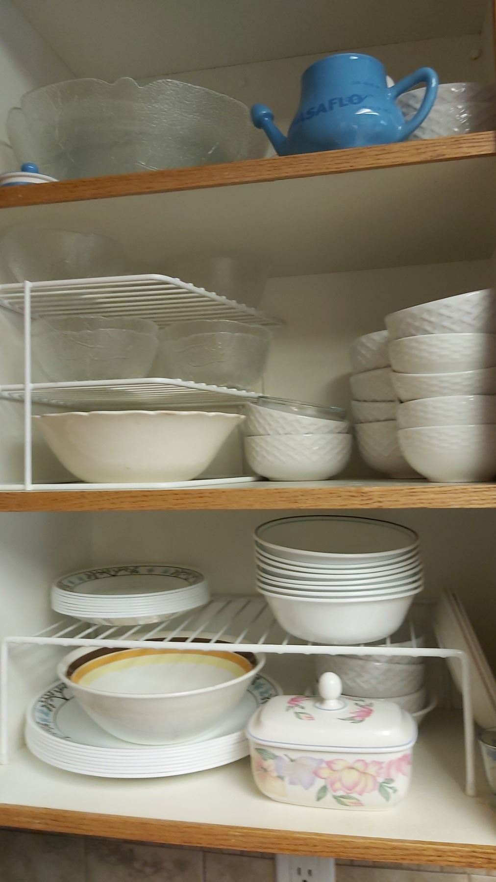 Corelle Vitelle 8 dinner plates, 8 B&B and 3 fruit bowls. White bowls by Canvas, Glass salad bowl with small serving bowls and more. Bring packing materials and pickup at 9am