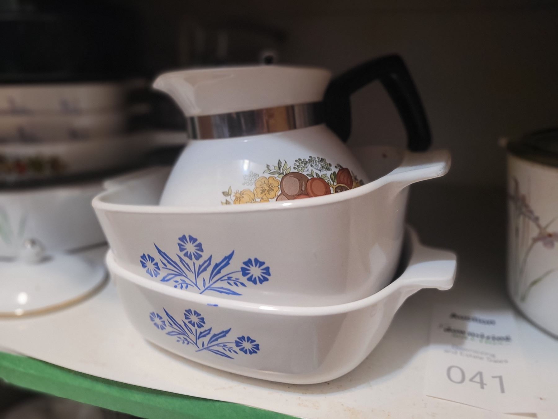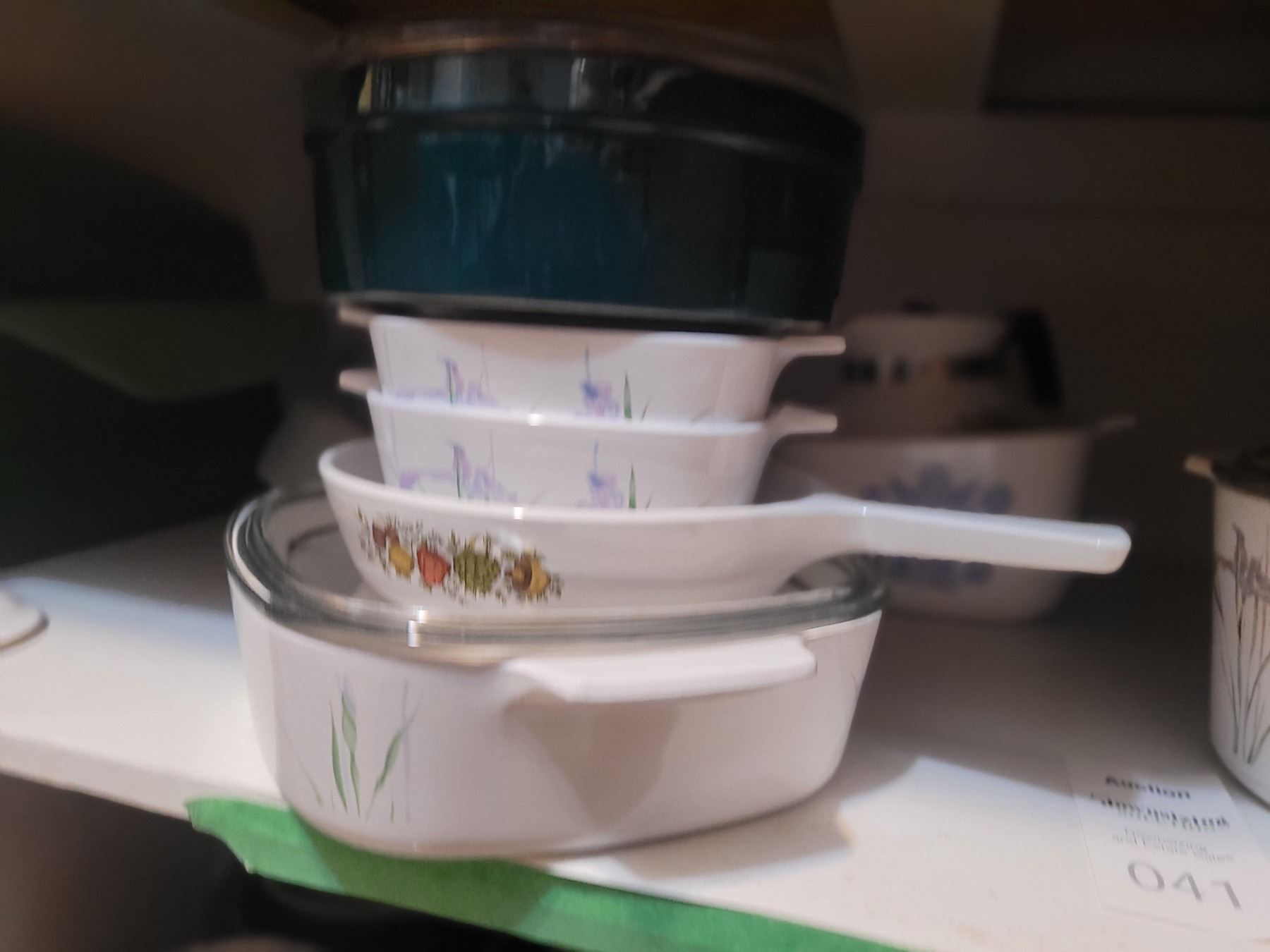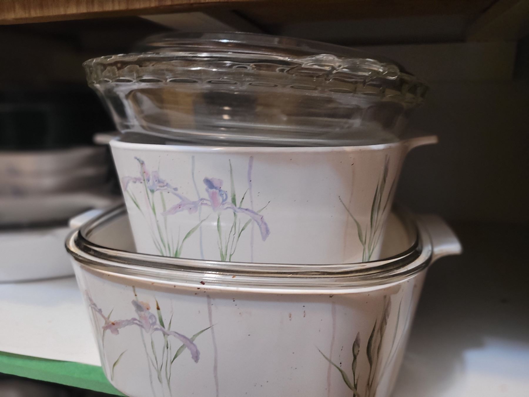 Large collection of Corningware Serveware. Glass pie plates, more. Bring packing material. Pick up 9-10