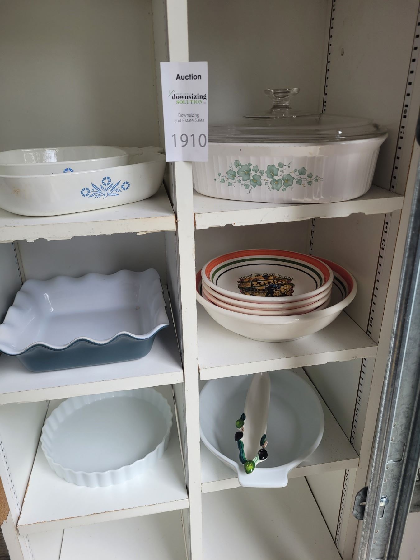 Collection of Corningware, pasta bowl set,Emily Henry casserole, more. Bring packing material. Pick up 10:30-12:00