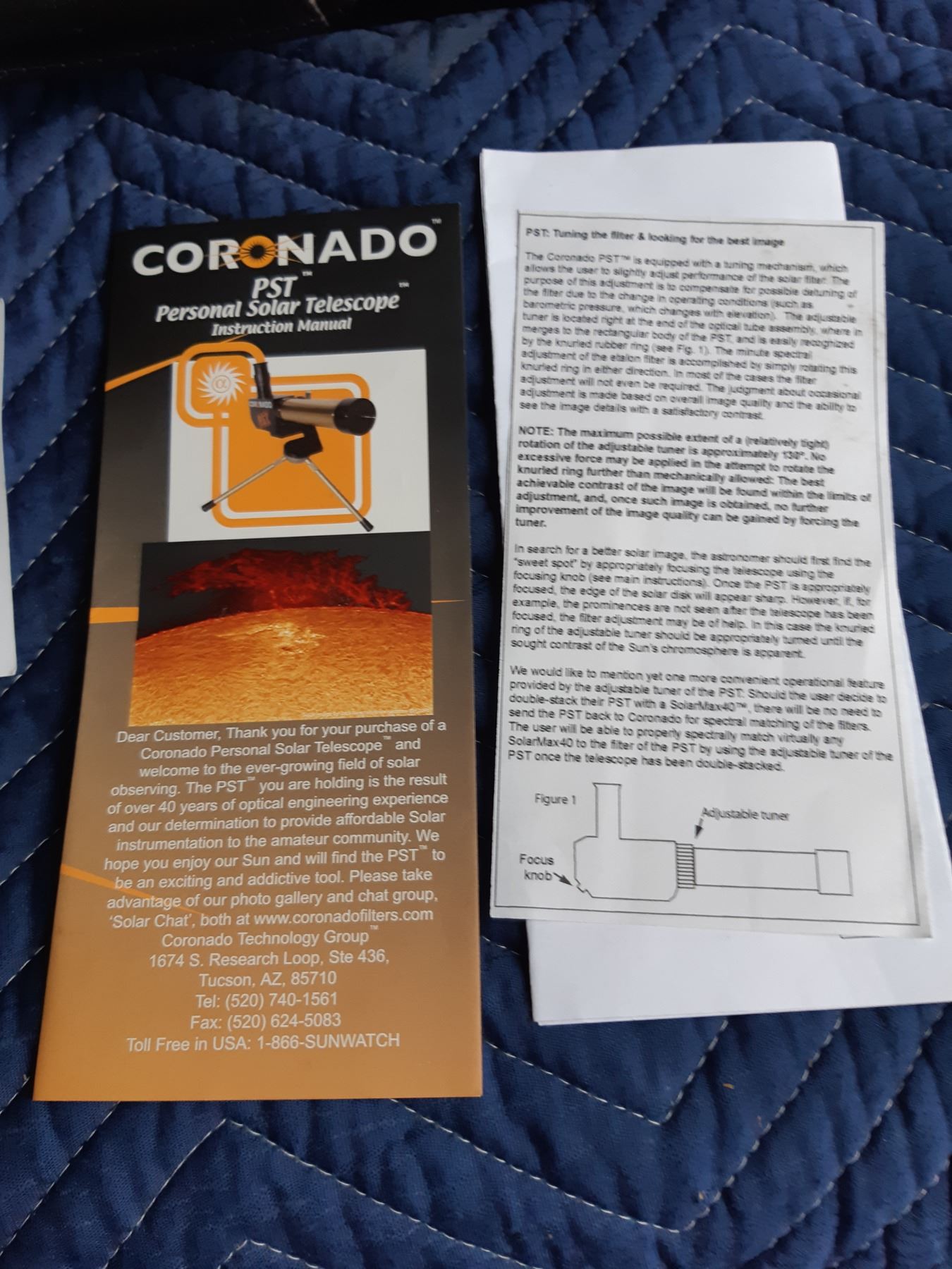 Coronado Personal Solar Telescope serial #94379 in hard case UntestedPickup at 9 am