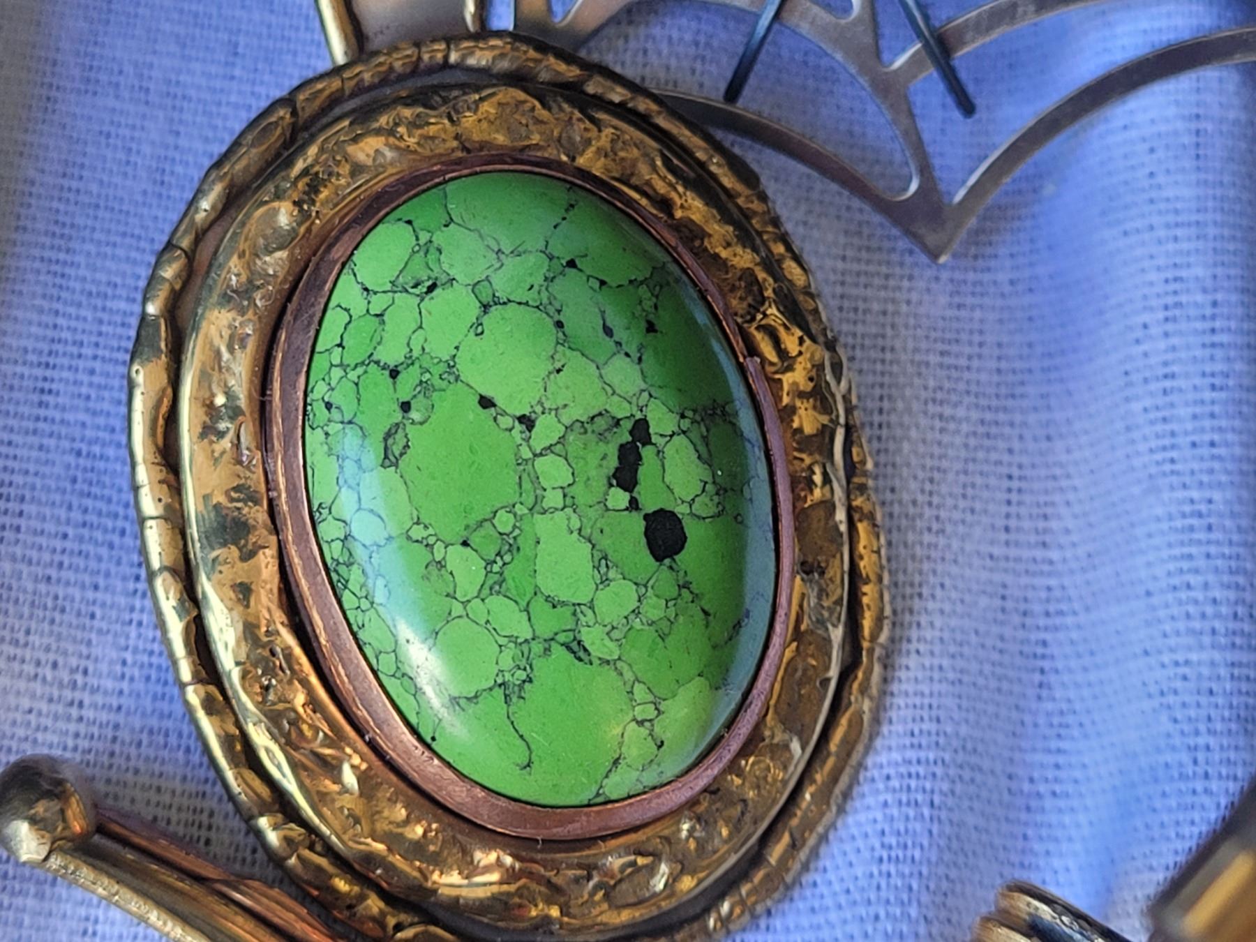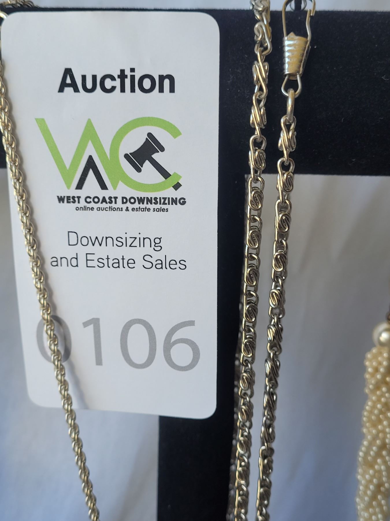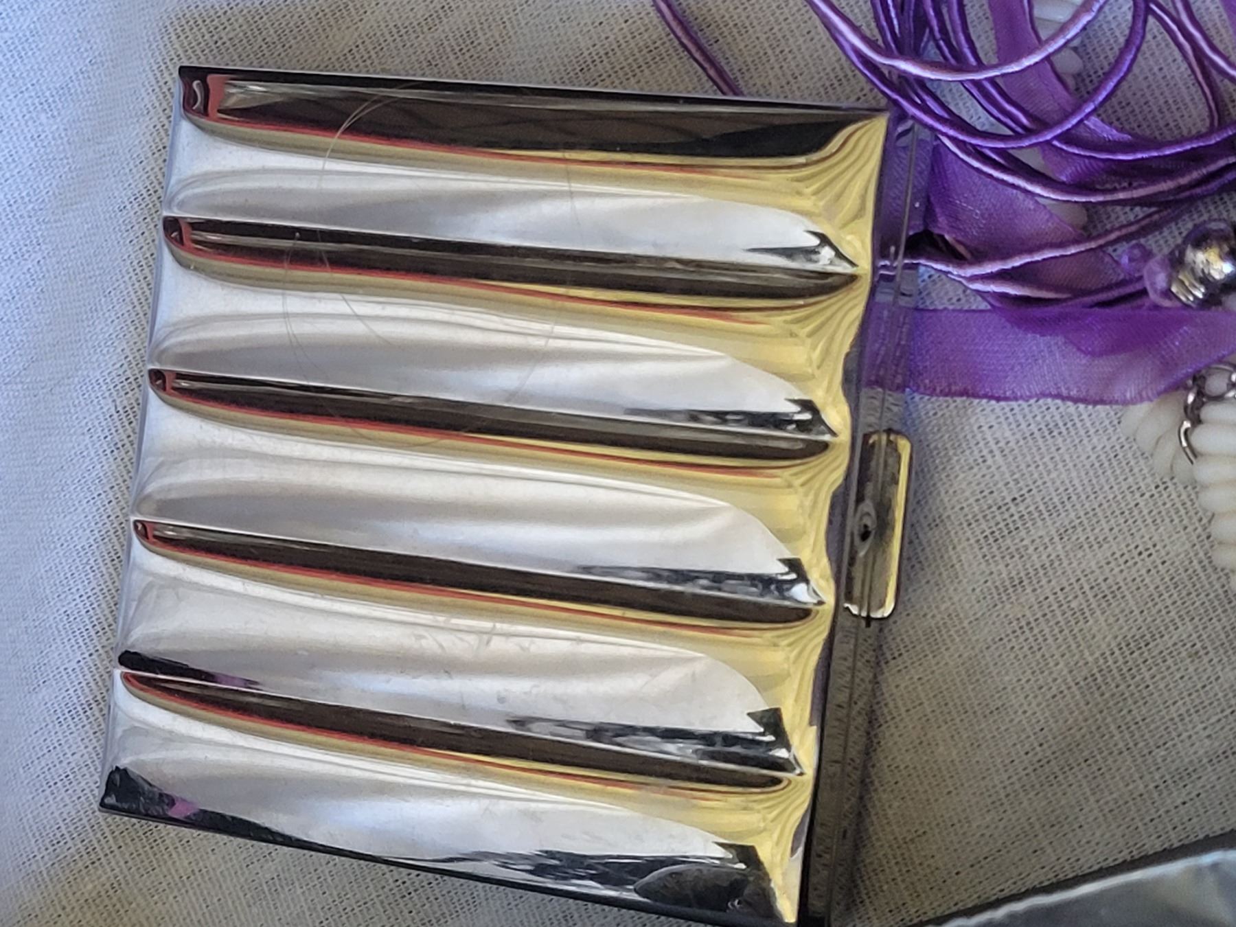Assortment of necklaces, earrings, brooches, vintage compacts, sterling silver bracelet and more. Pickup at 9 am