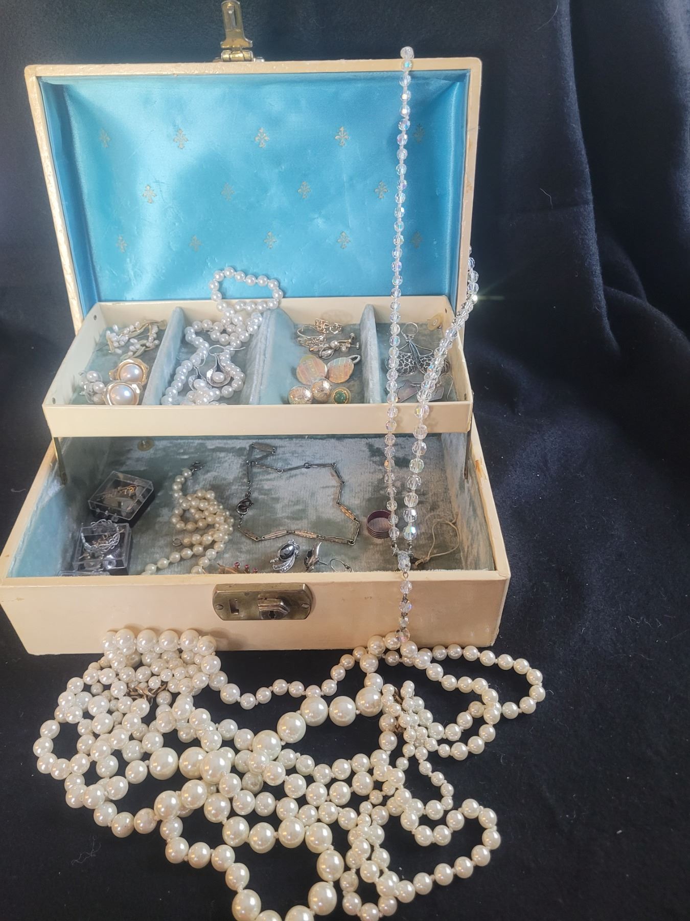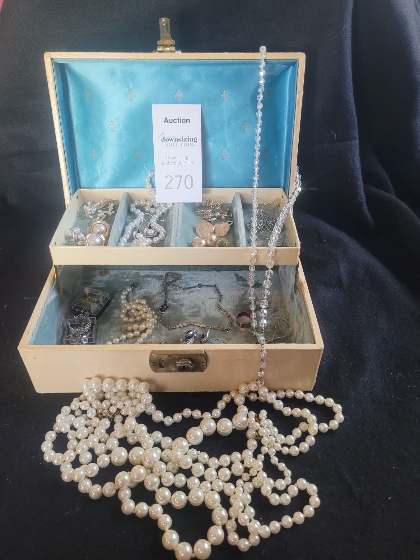 Jewelry box and assortment of costume jewelry Pickup at 9 am
