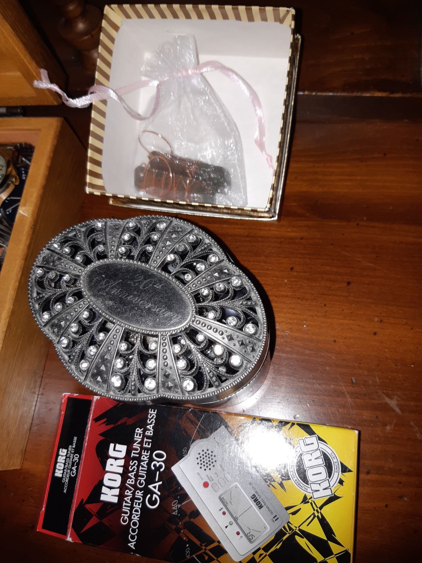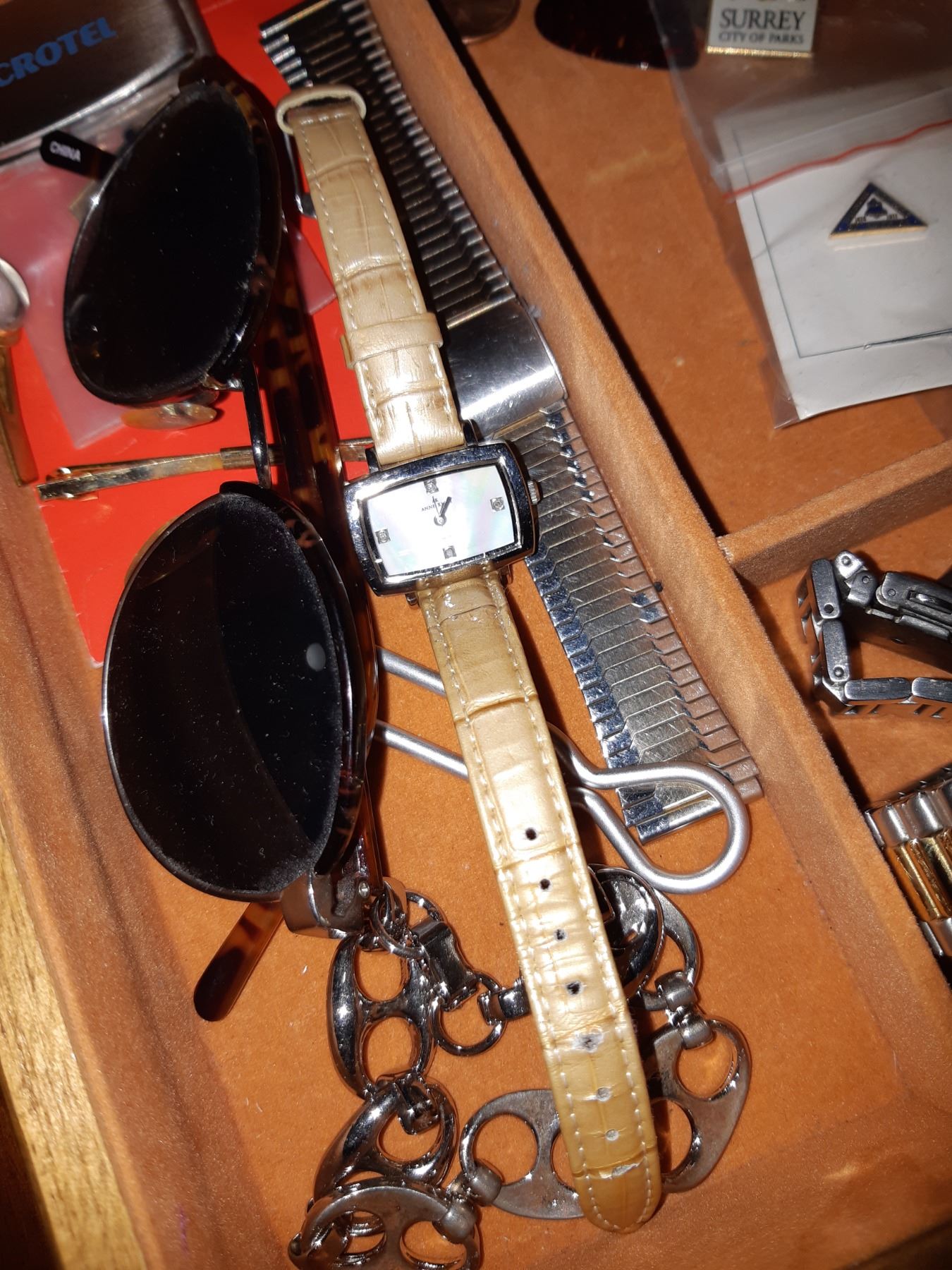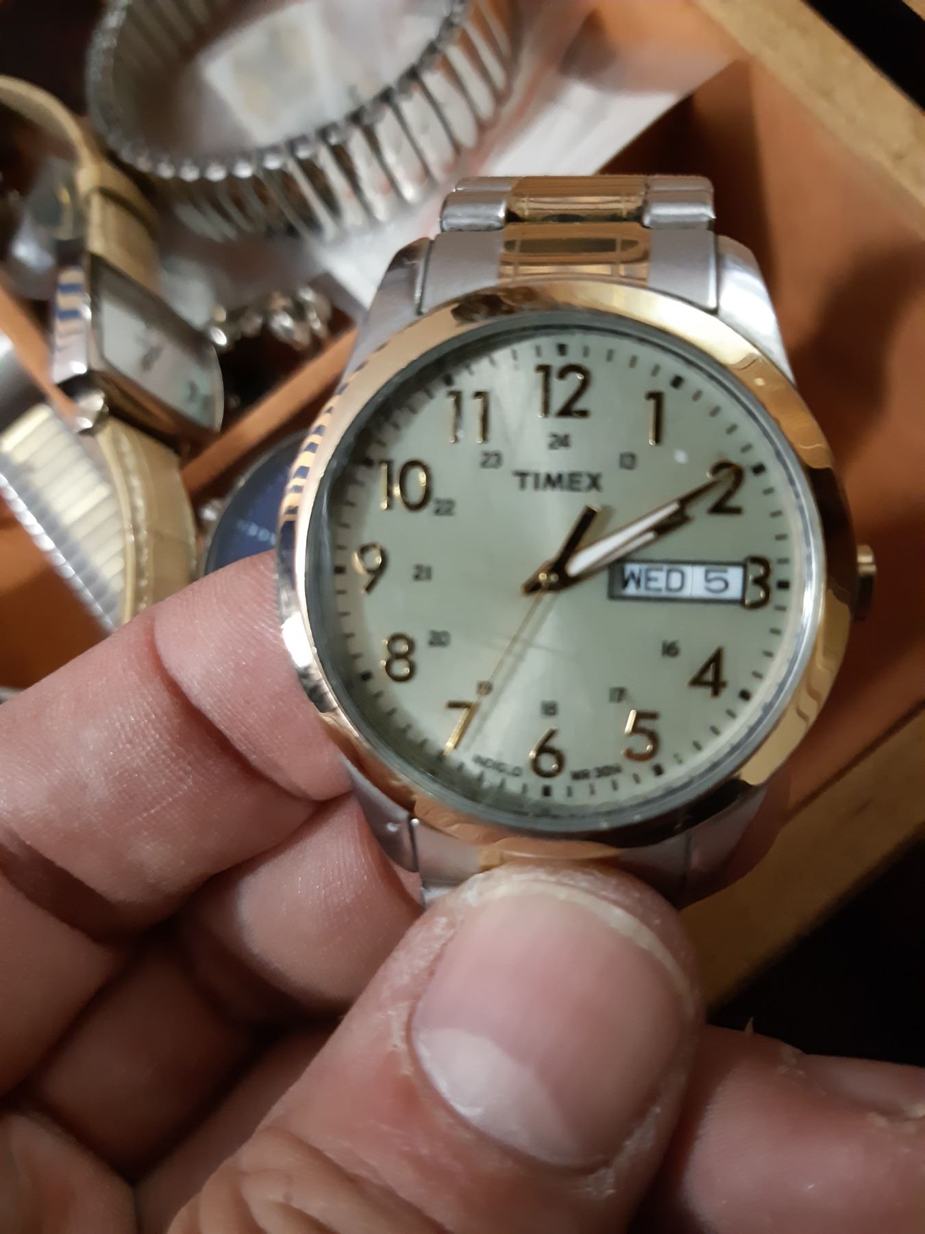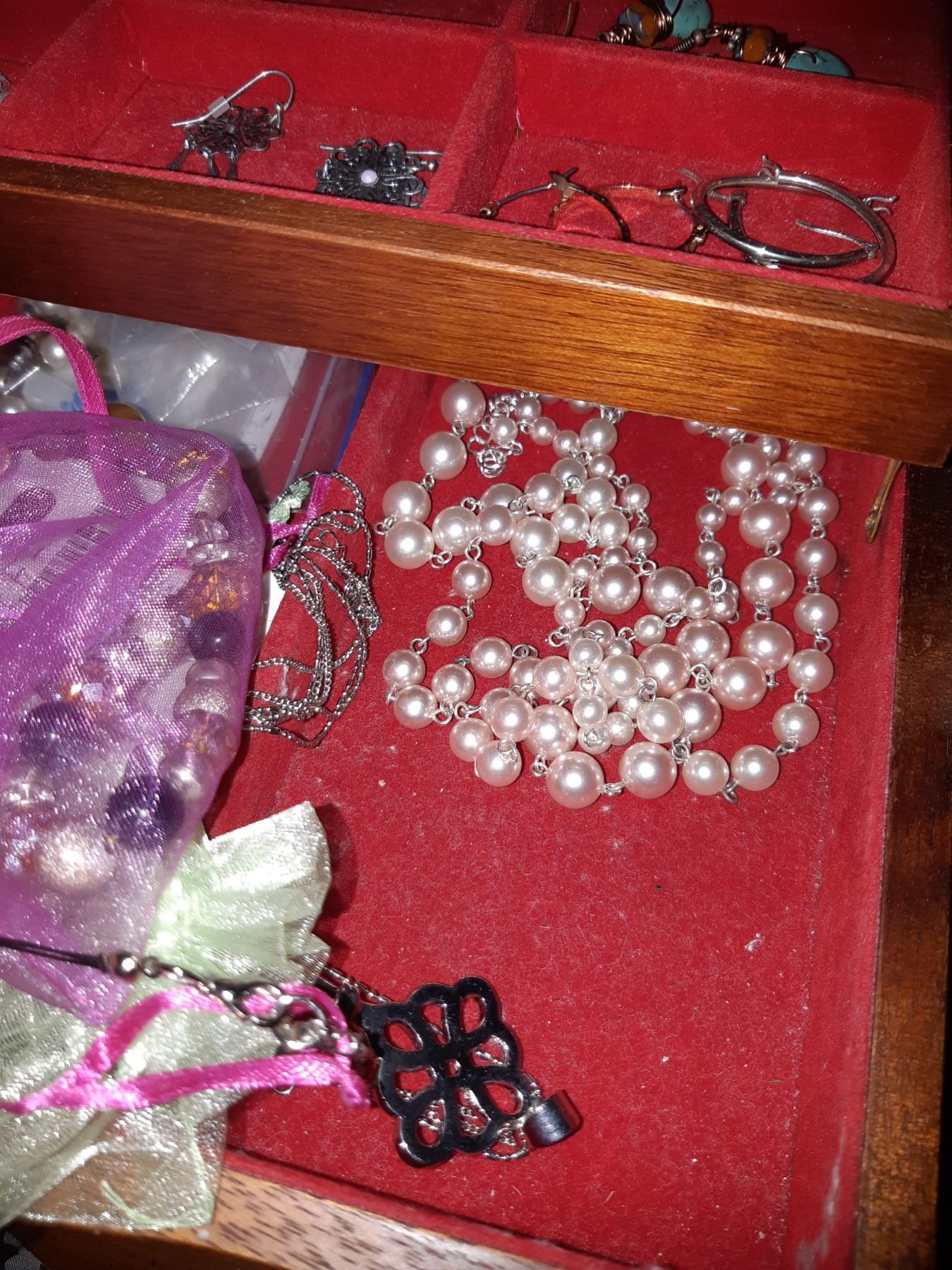 Jewery box, ladies and men's watches, bracelets, earrings & neclases. Pickup at 9 am