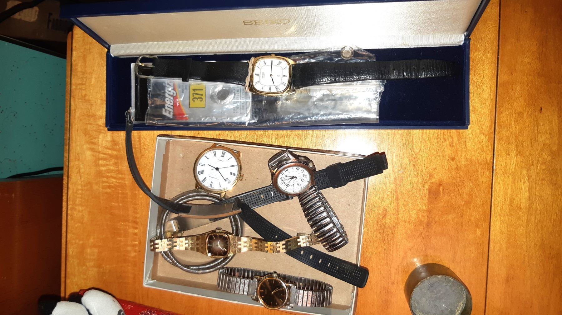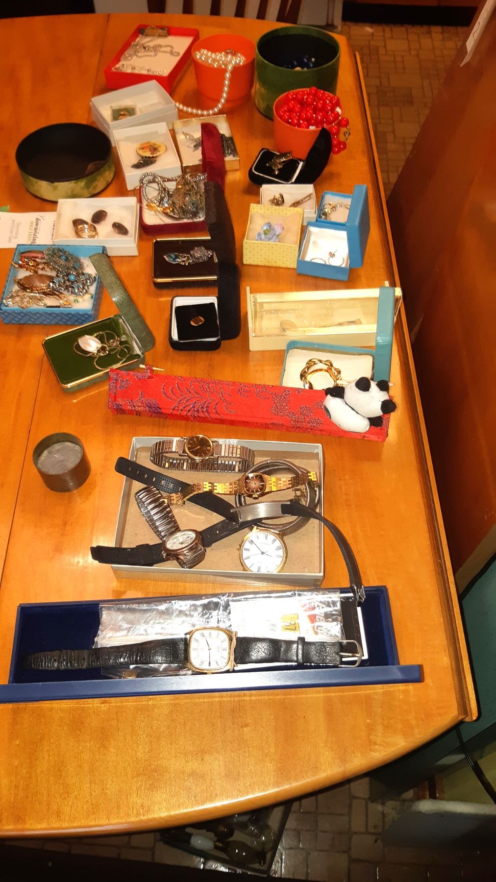 Collection of costume jewelry and women's and mens watches,untested . Pick up 9-10