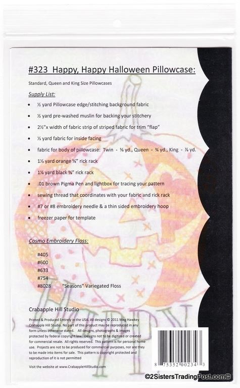 Pattern #323 'Happy, Happy Halloween Pillowcase'. 2011 design by Meg hawkey for Crabapple Hill Studio.