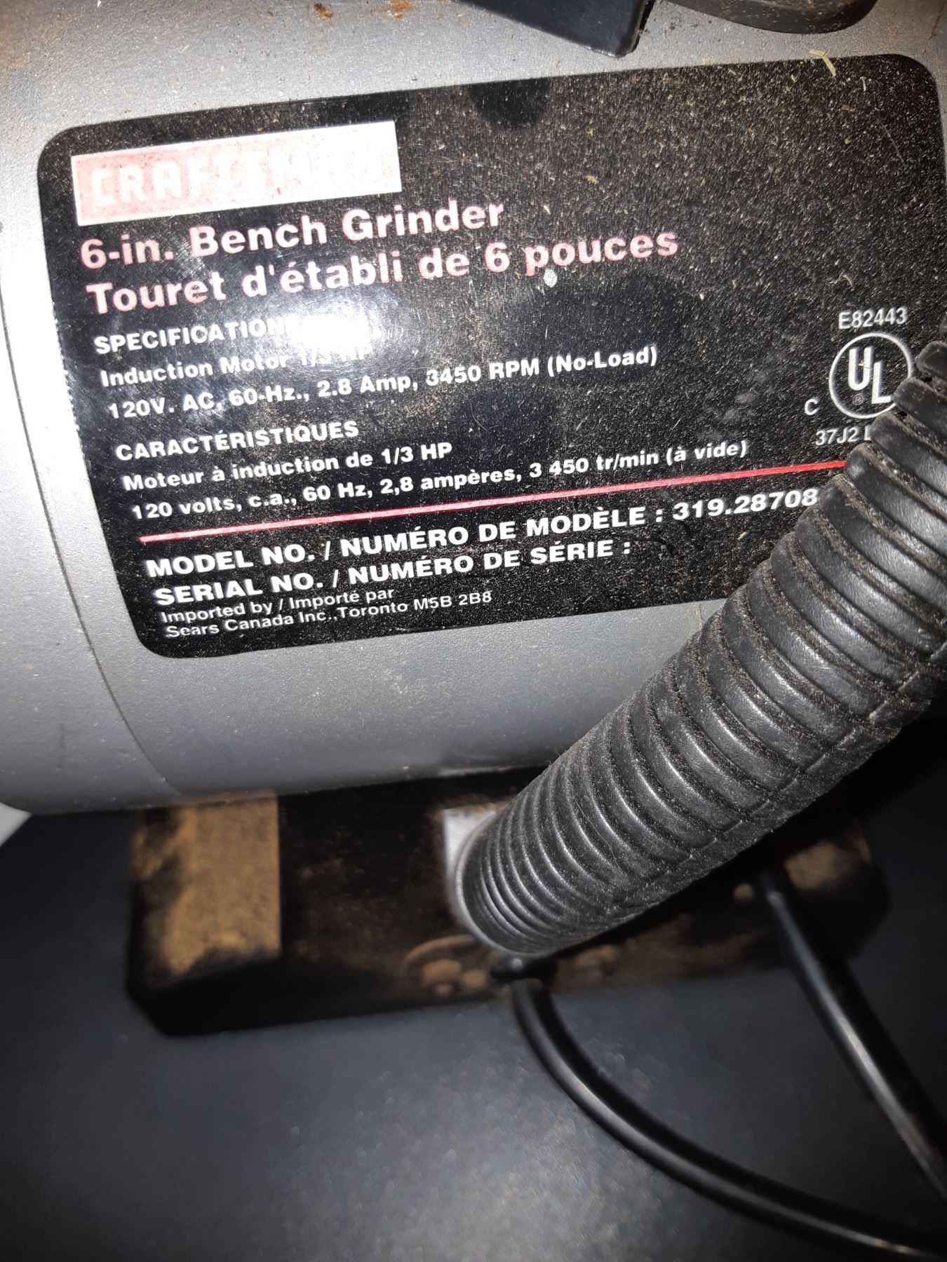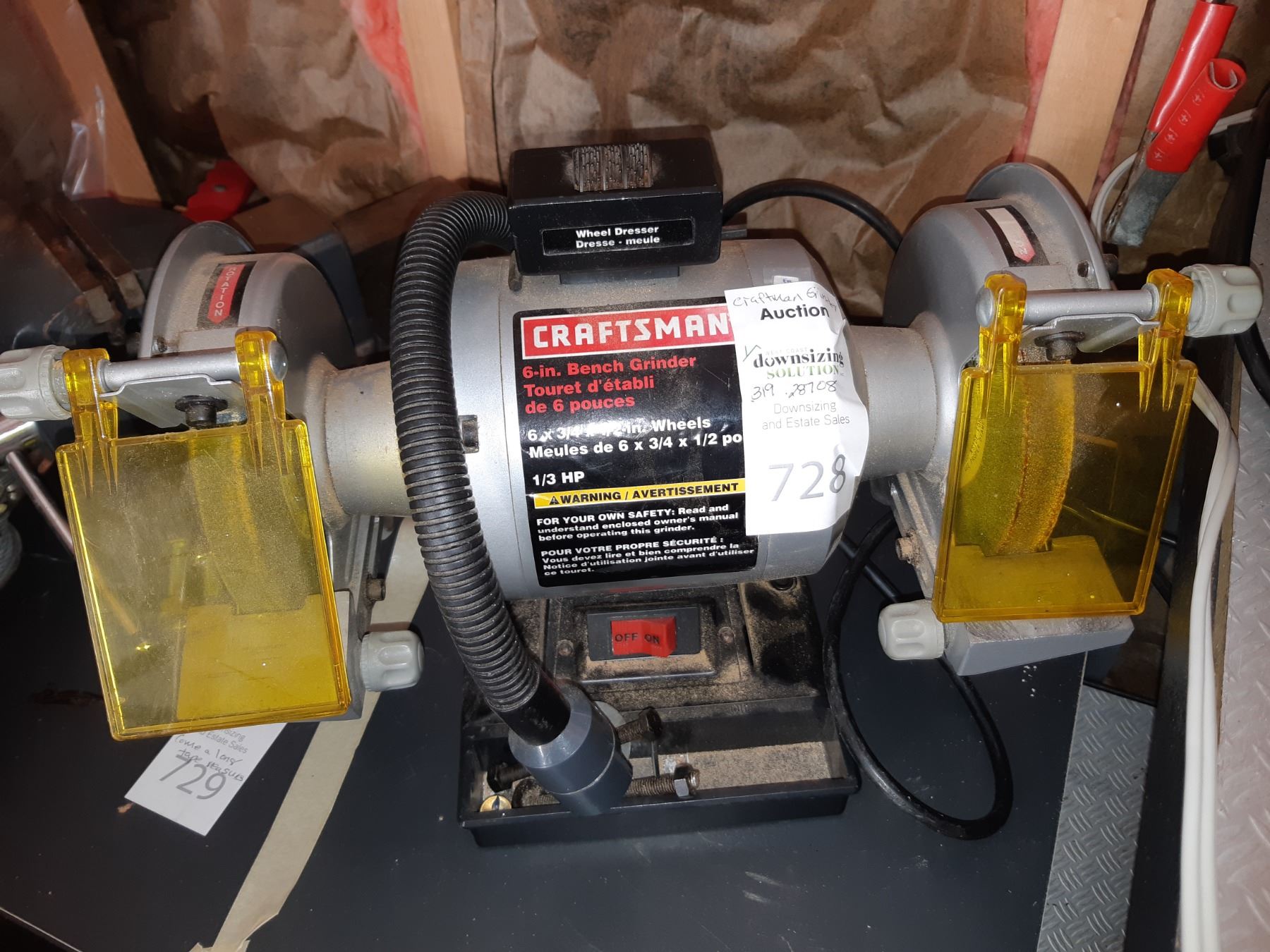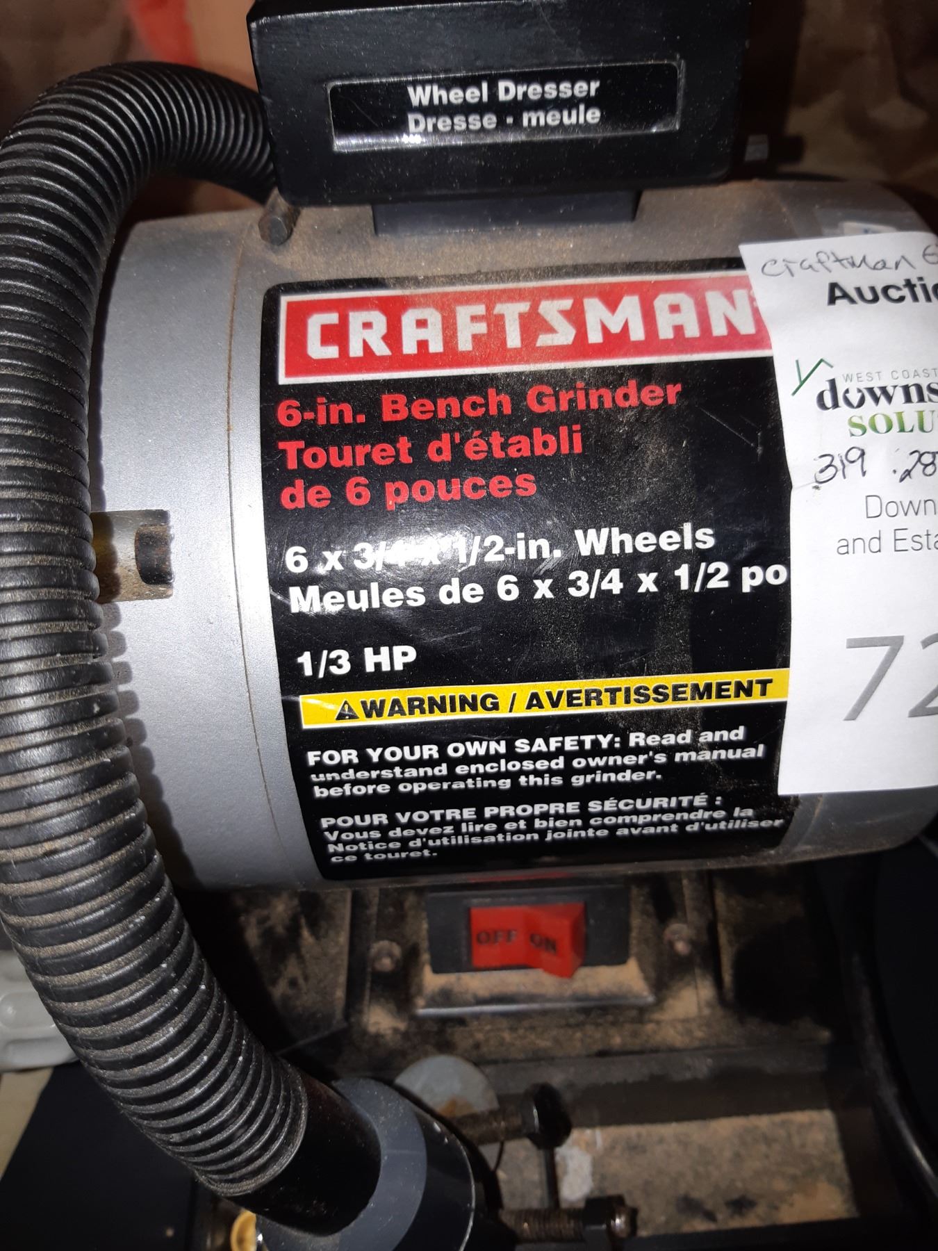 Craftsman bench grinder, model 31928708, 6”, 1/3 hp. Pickup at 9 - 11 am