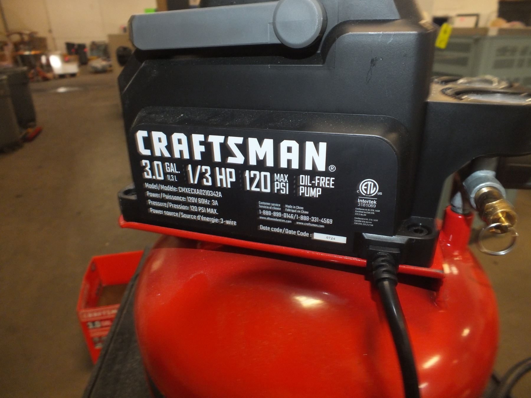 Craftsman 3 Gal Air Compressor w/ Air Chuck in good working condition...like new...used