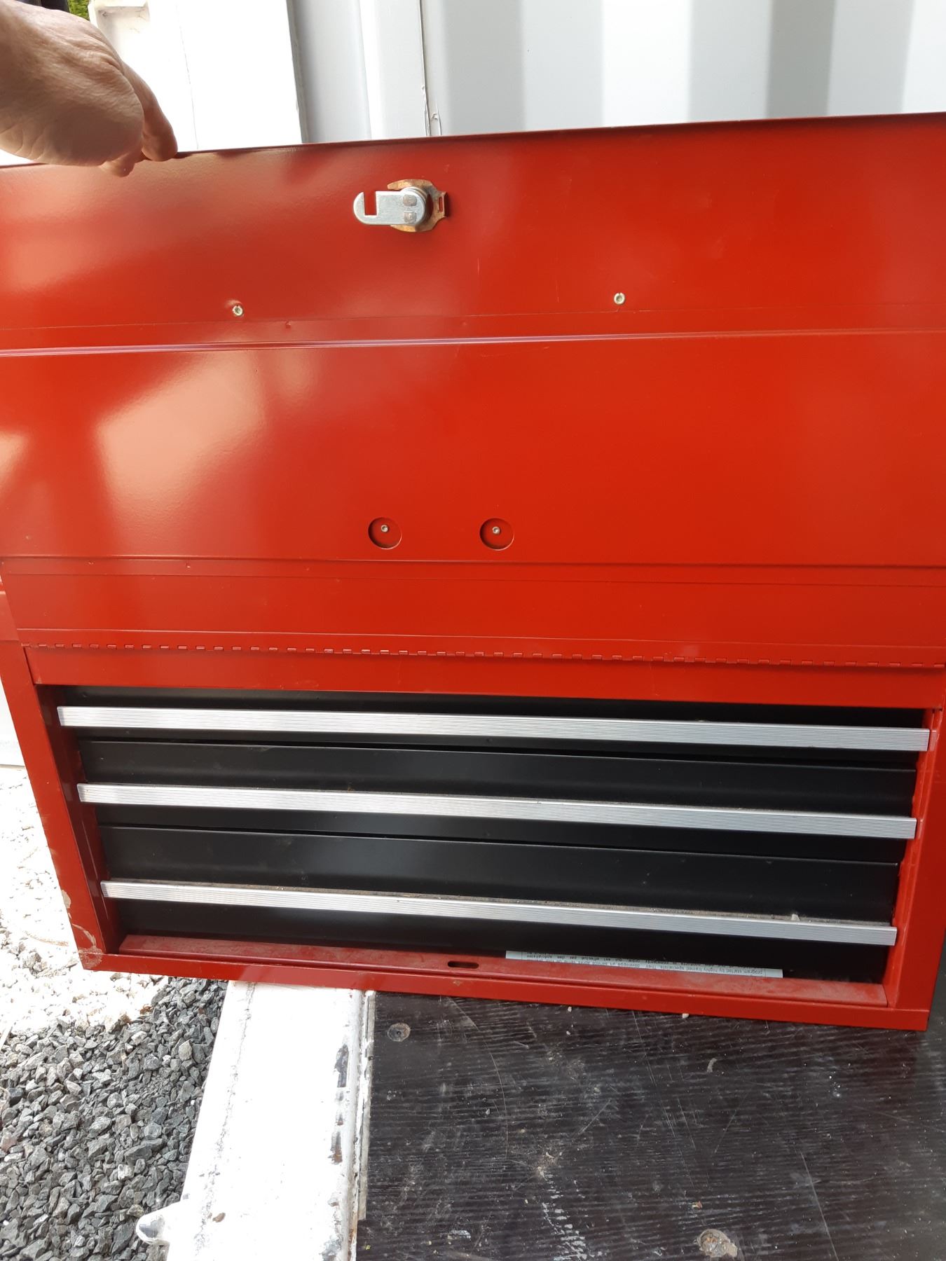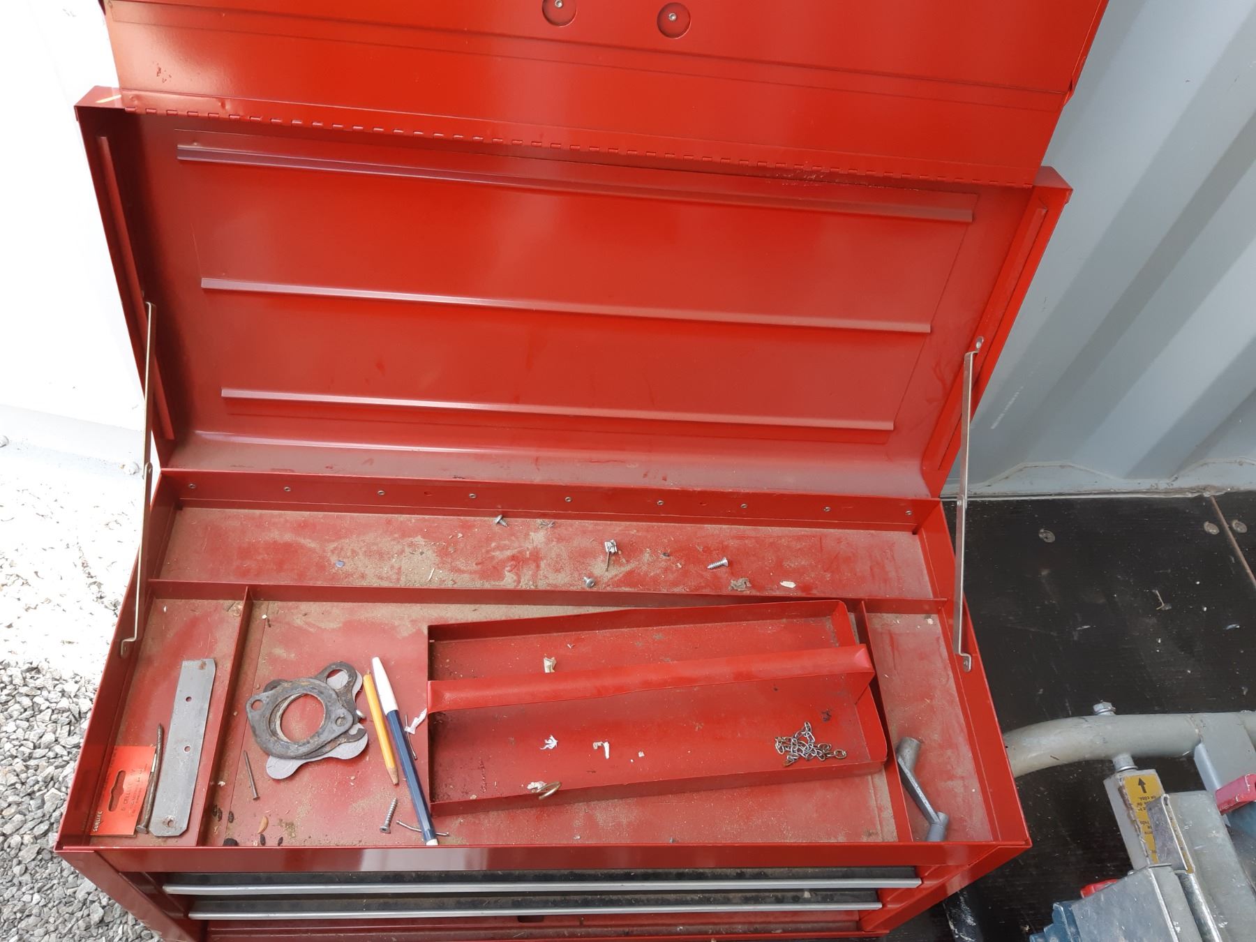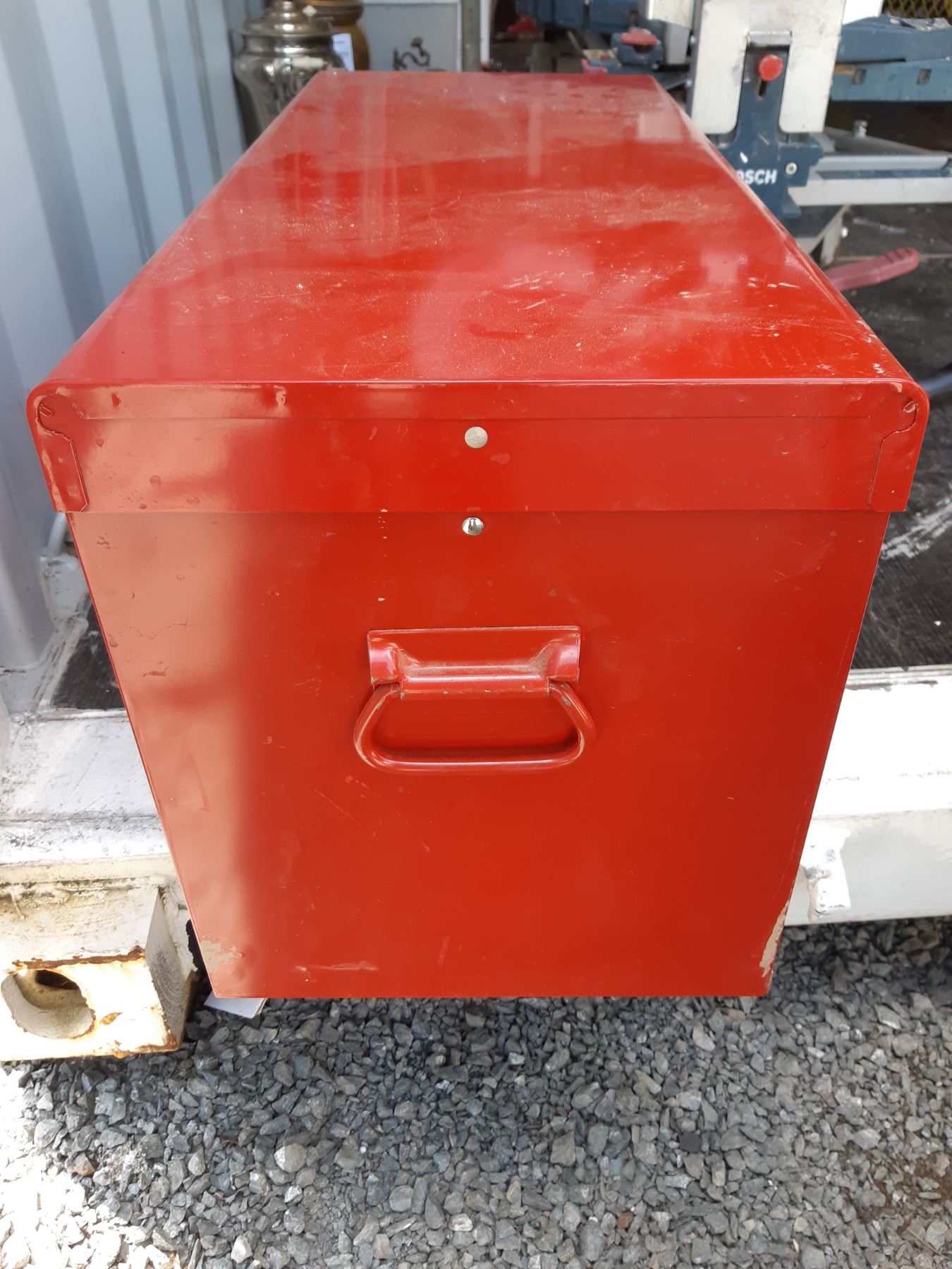 Red metal tool chest with drawers 26x12x14 pickup at 10 am