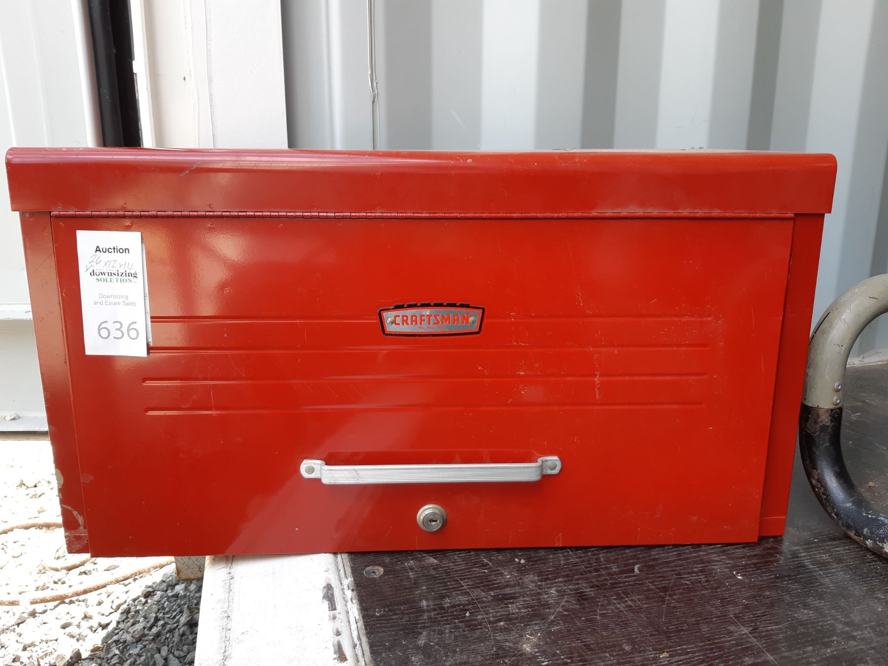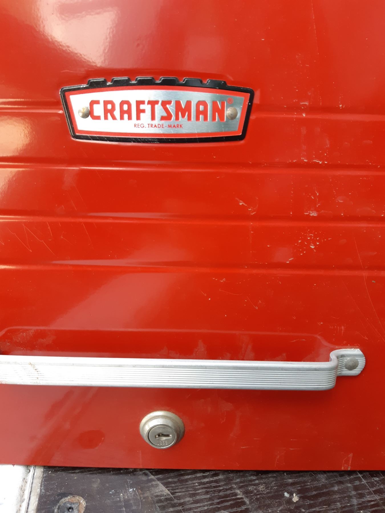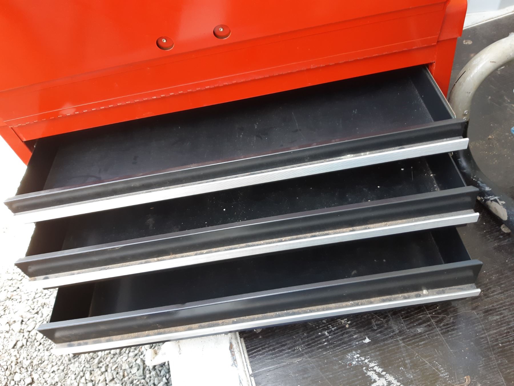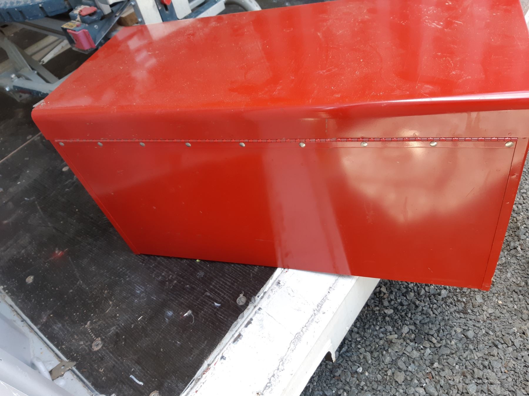 Red metal tool chest with drawers 26x12x14 pickup at 10 am