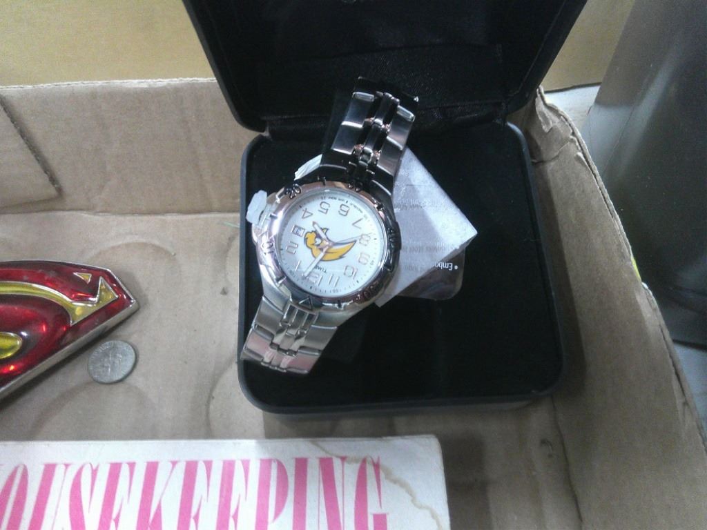gauge, insulated pouch, Good housekeeping book, tommy hilfiger wallet, watch, superman pendant