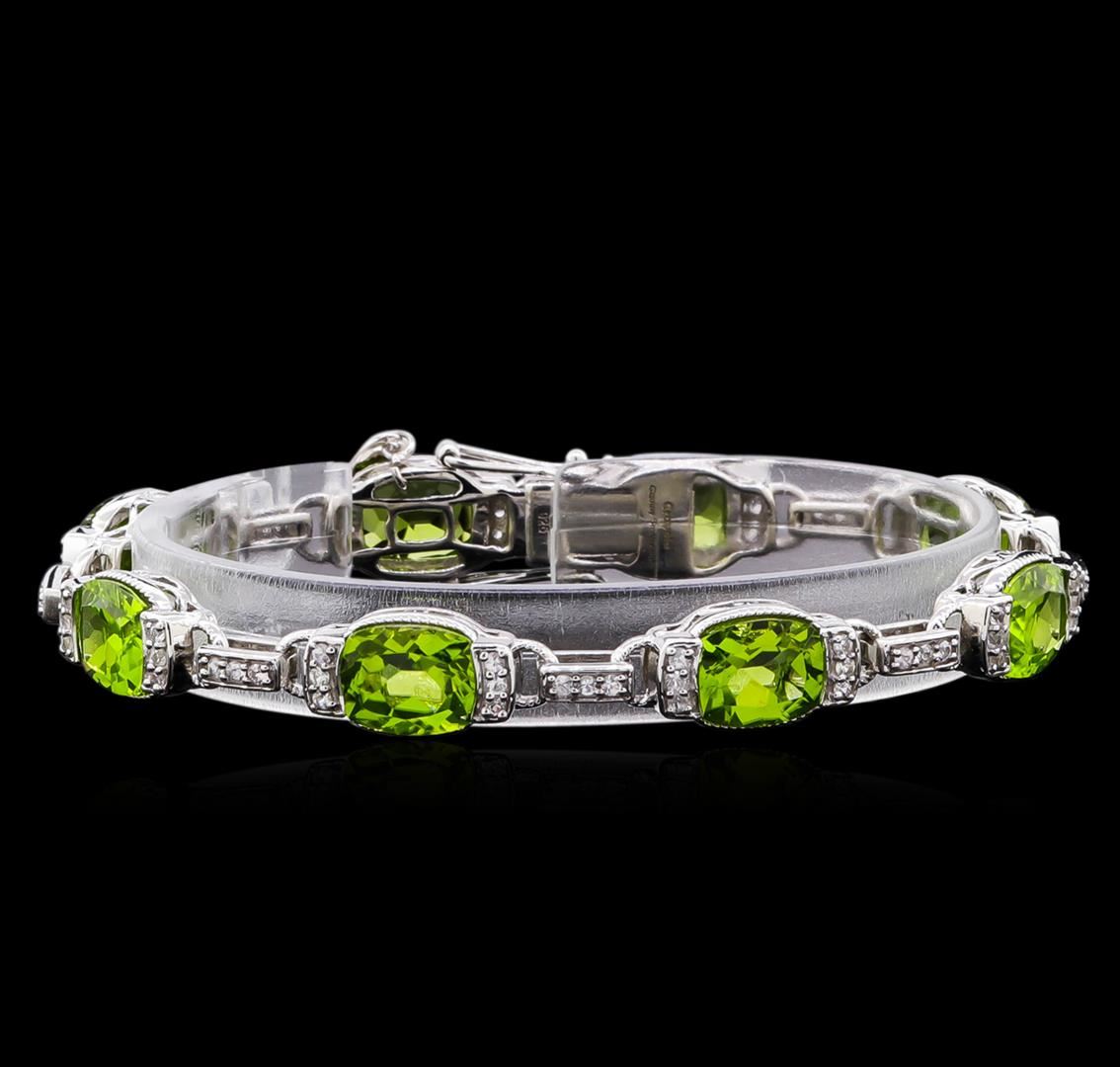 From the brand whose products have inspired creative expression for more than 110 years comes this beautiful bracelet by Crayola. This stunning piece of jewelry reflects the image and colorful personality of the Crayola brand. The Bracelet features.925 Silver With Rhodium weighing 17.73oz containing Granny Smith Apple Peridot (AAA) Cushion 10x8mm - 8Pcs + Natural White Sapphire Round 1.50mm - 69Pcs (With J BACK). Total Peridot weight is 20ct. Total White Sapphire weight is 1.17ct. Measures: 7.50".