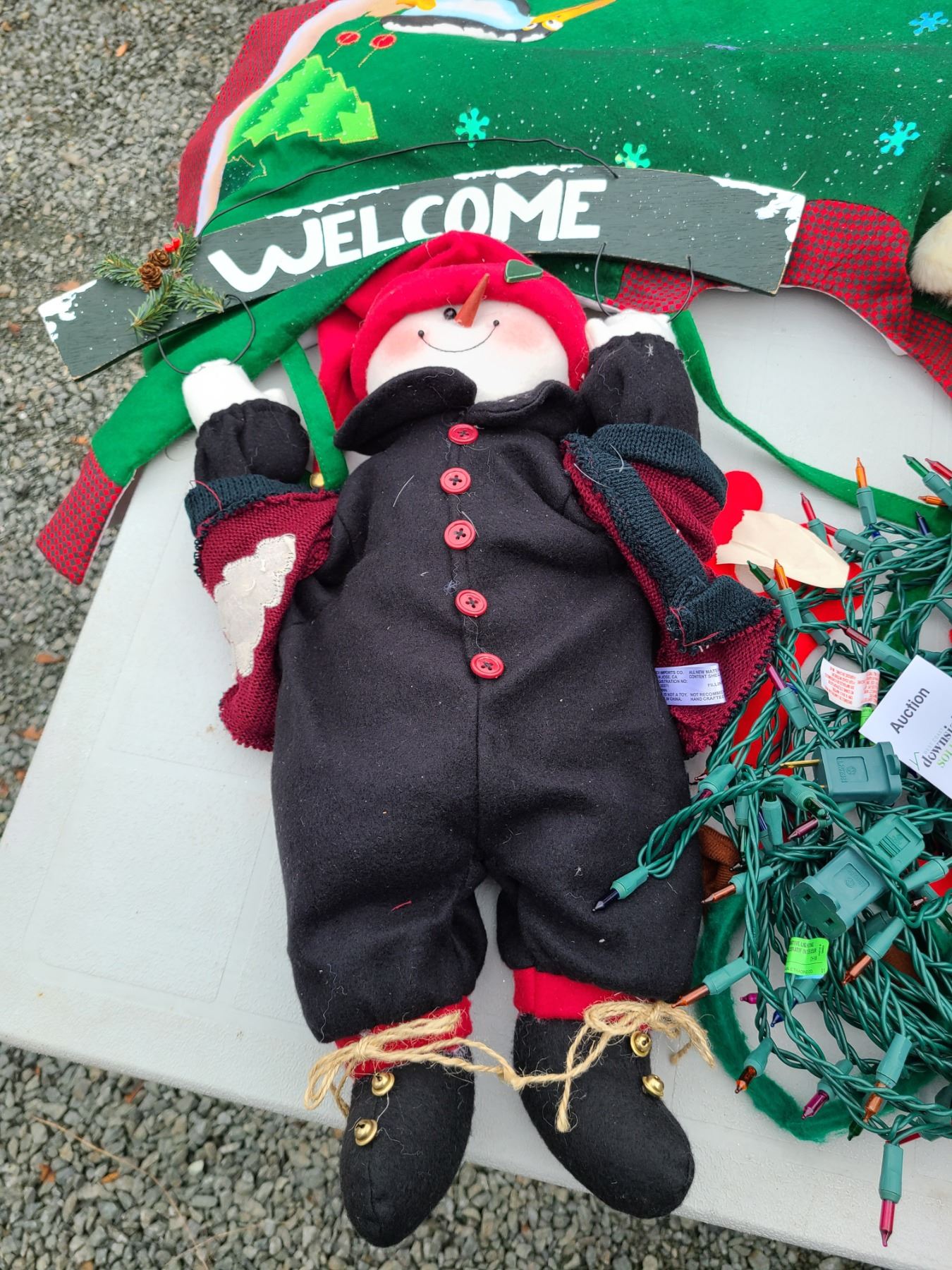 Tree skirt, golden flower garlands, santa 8" and more Pickup at 10 am