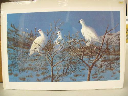 Cross 154/500 Signed Print Large group of Ptarmigans 17" x 28" IS (22)