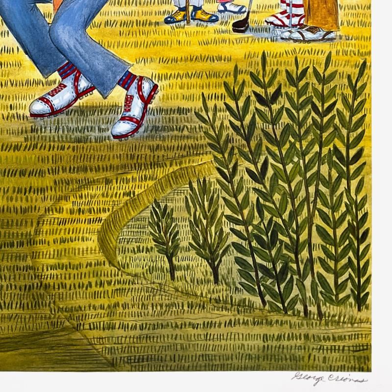 "Crotchshot" is a limited edition lithograph on paper by George Crionas (1925-2004), numbered and hand signed by the artist. Includes Letter of Authenticity. Measures approx. 40" x 28" (border), 36" x 25.5" (image). There may be very minor imperfections in the white border area.