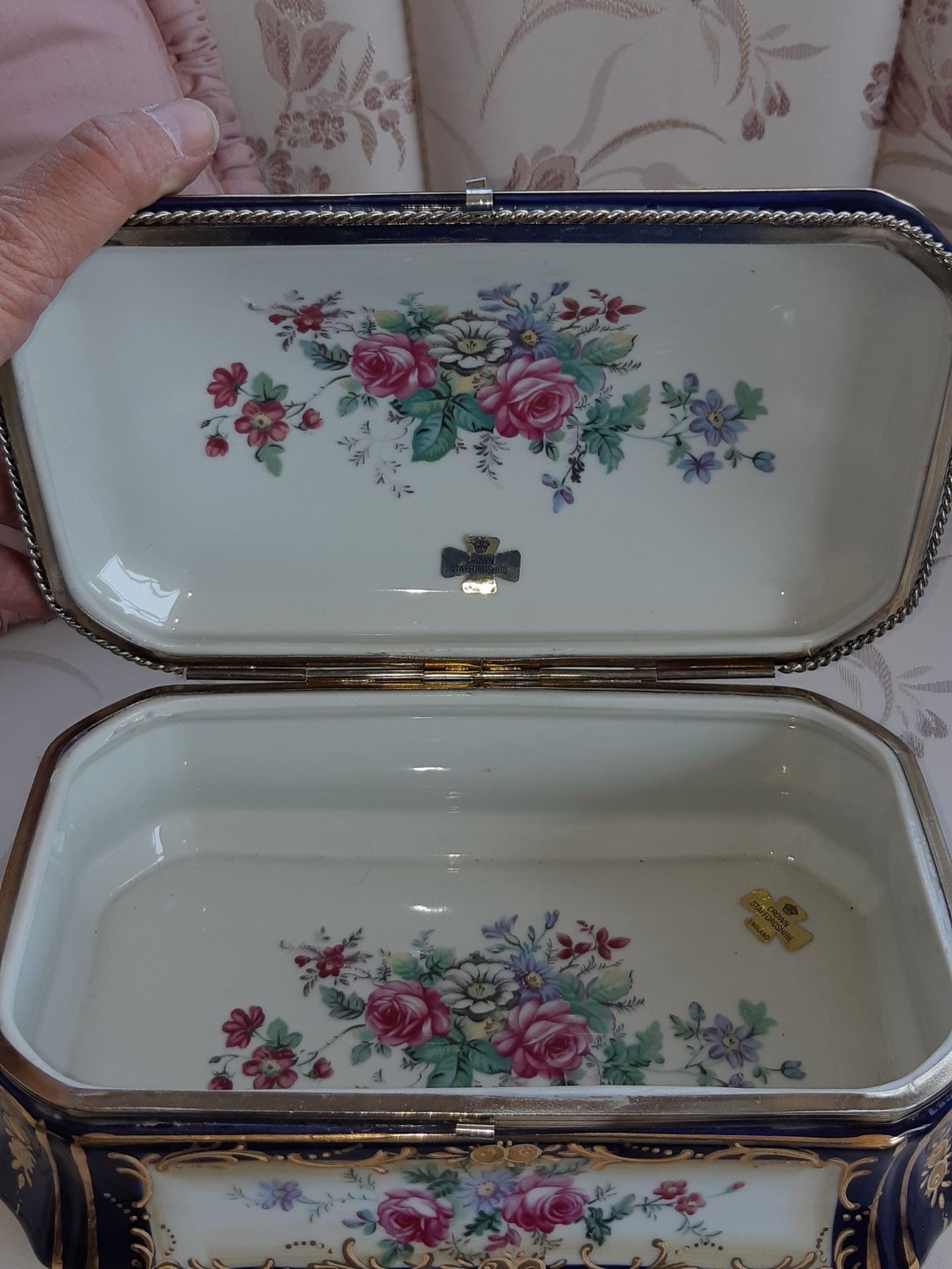 Beautiful Porcelaine hinged curio box, 10.5x7x5. Pick up 9-10