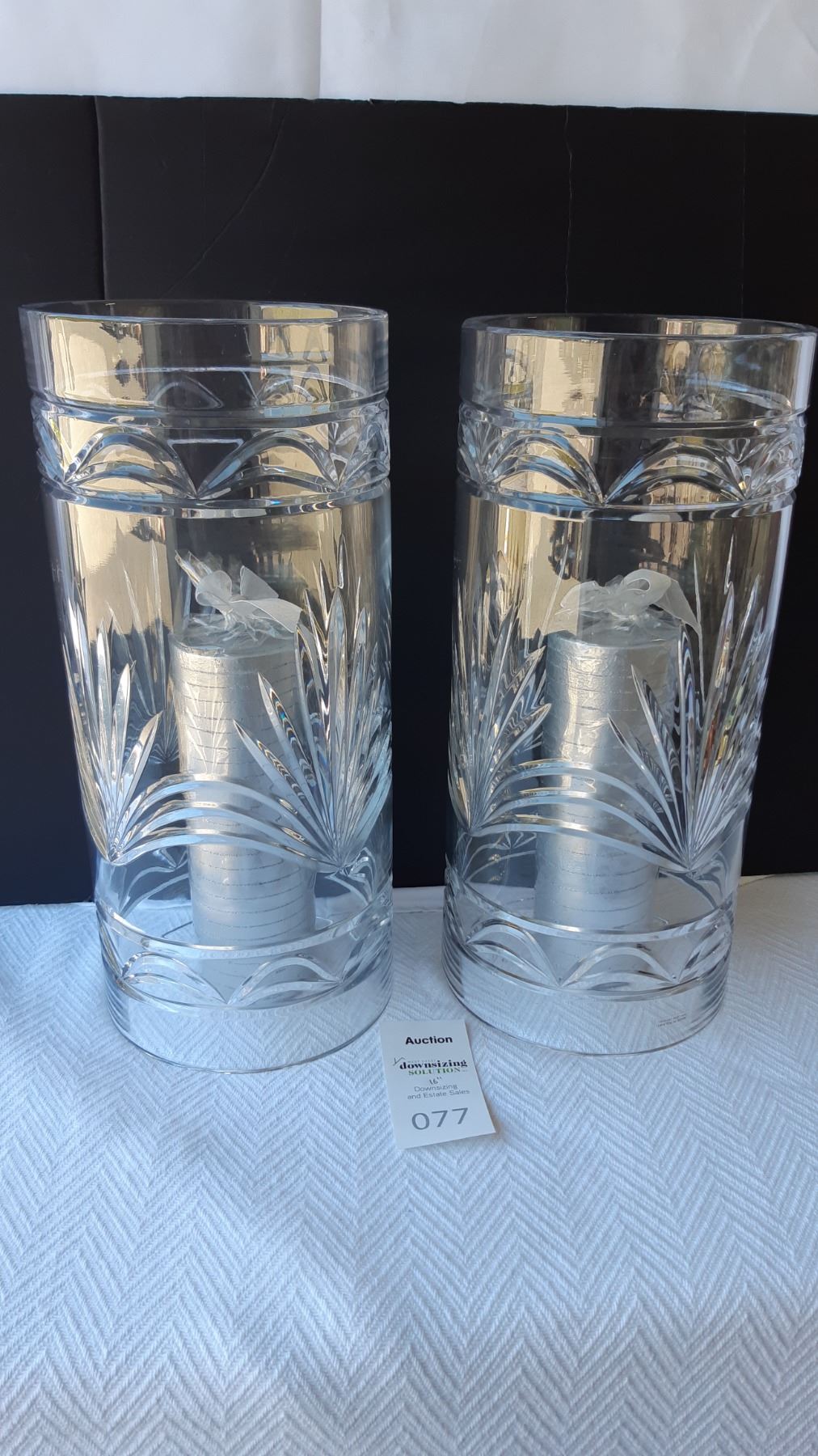 2 x Lead crystal candle type holders 16" each. Puckup at 9 am