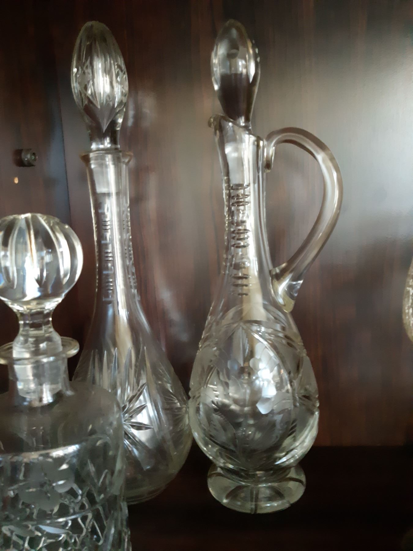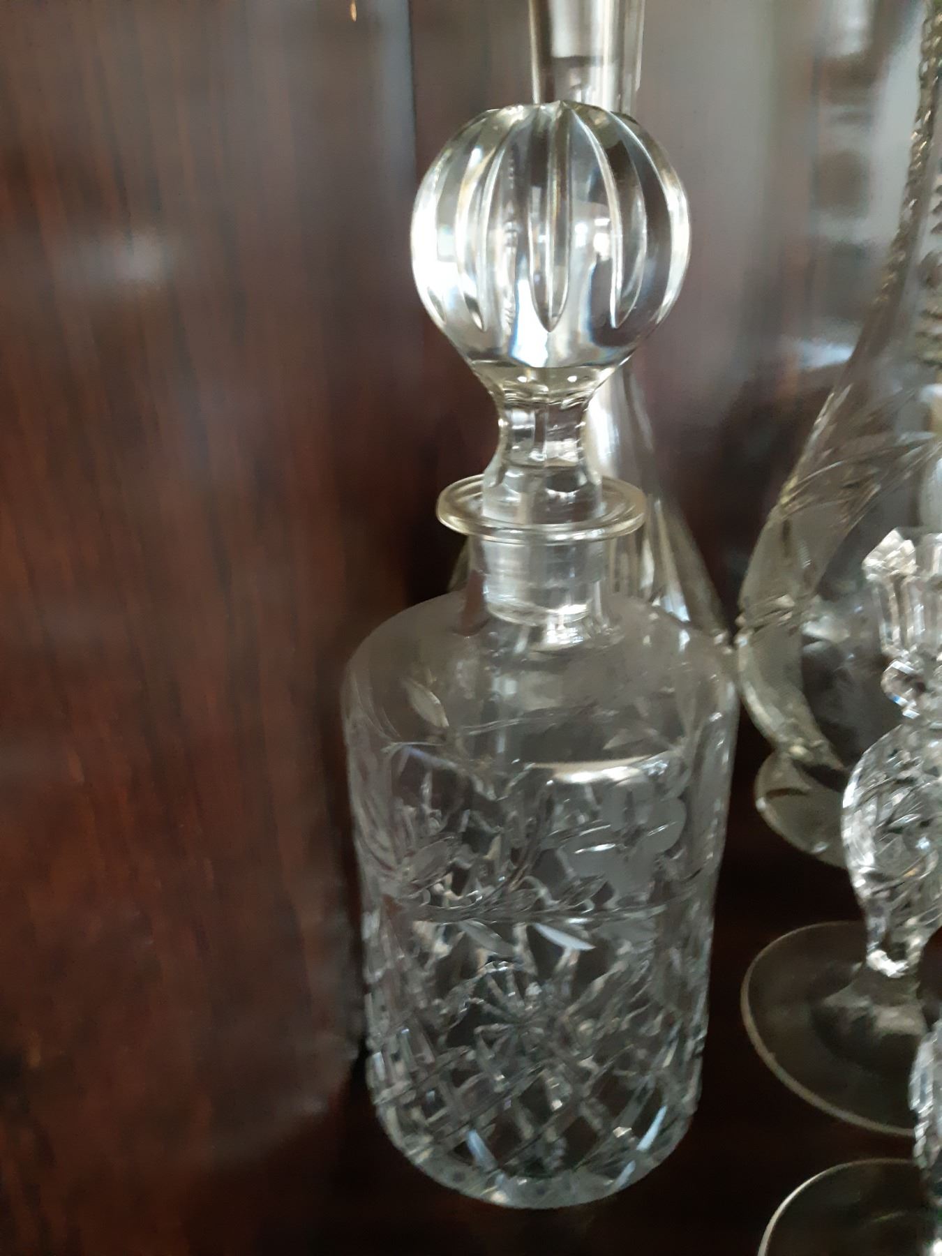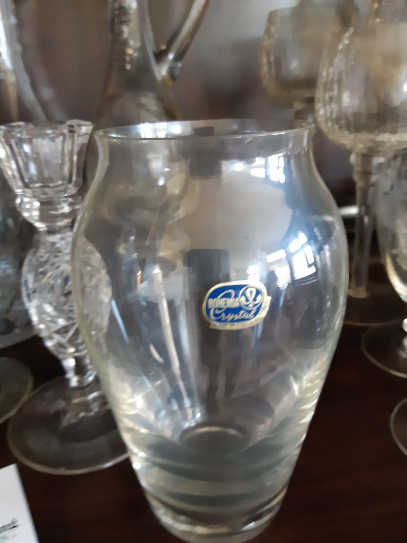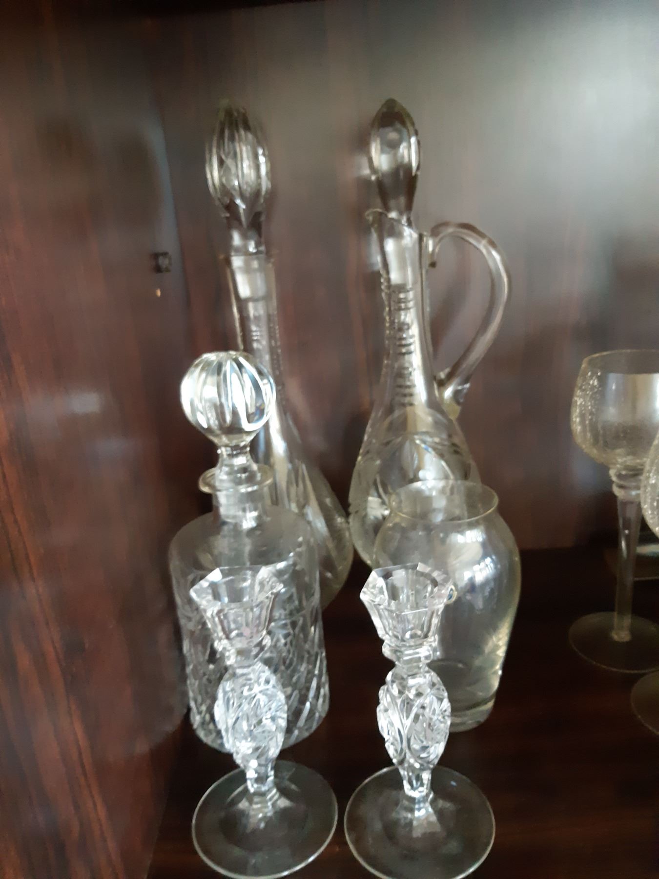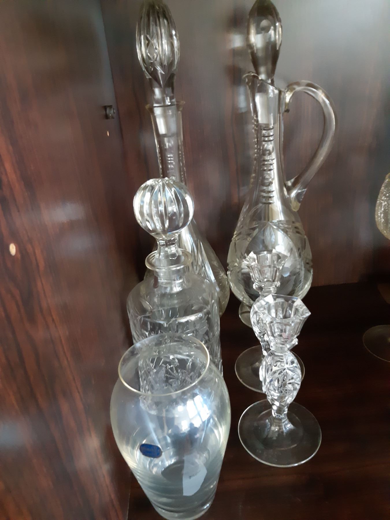 Crystal decanters 14", small crystal decanter, crystal vase and 2 candle sticks. Bring packing supplies Pickup at 9 am