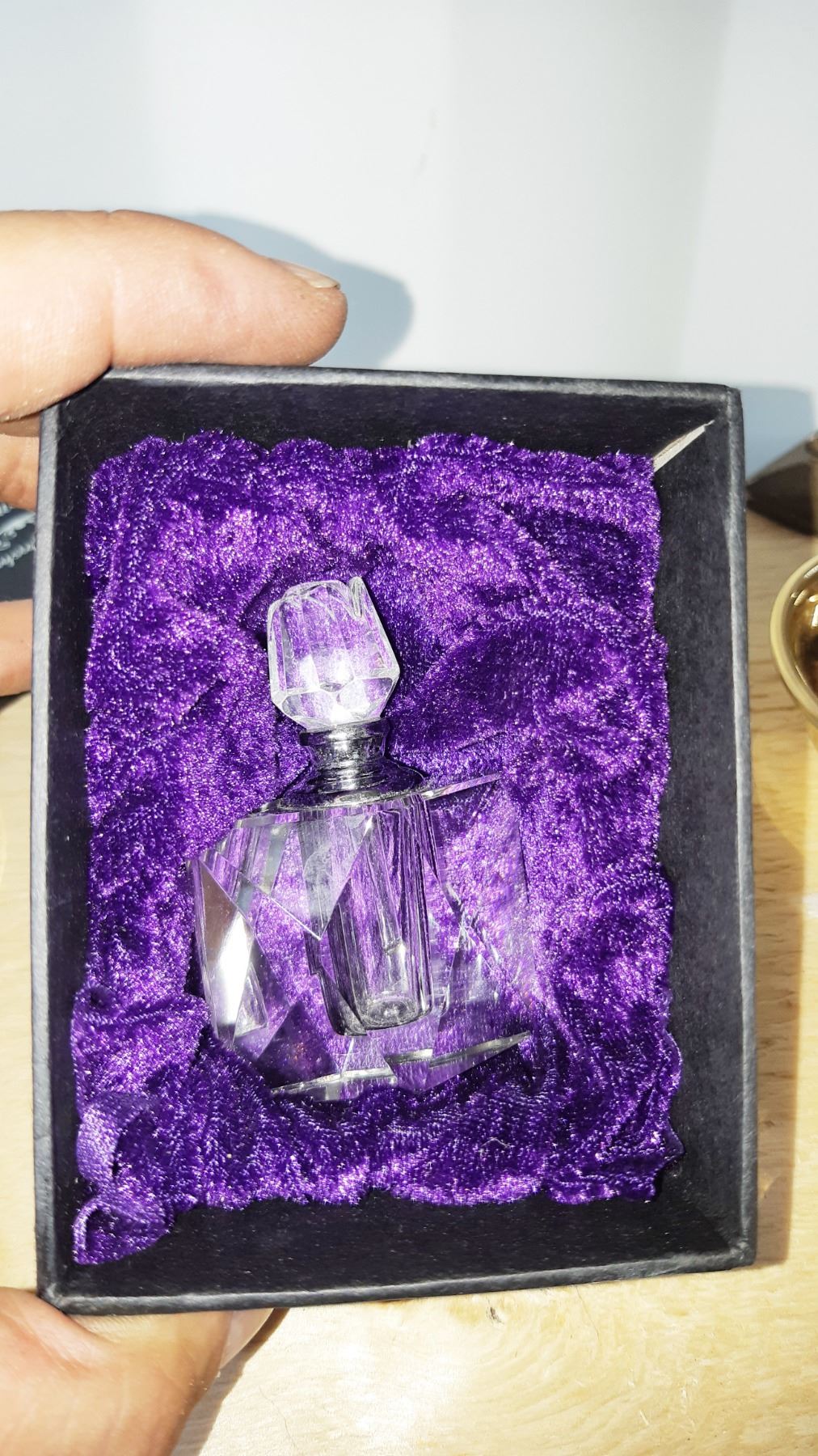 Dan Samuals crystal perfume bottle. Vanity Grooming Sets. Swinging picture frame. Pickup at 9 am