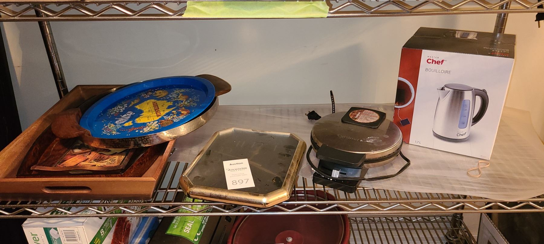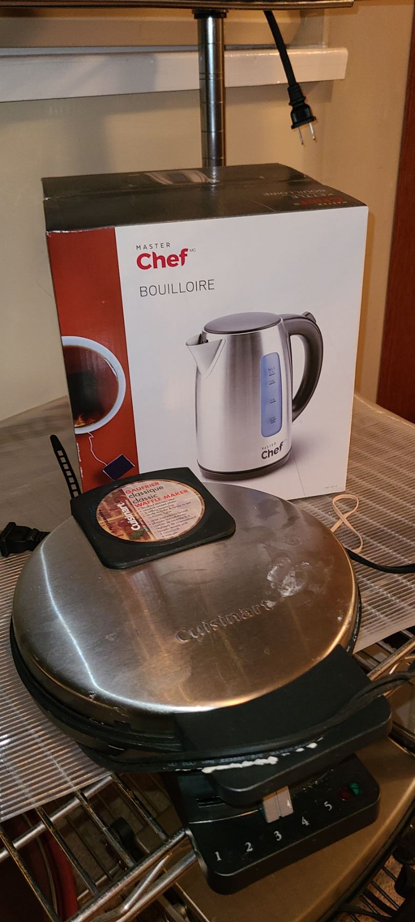 Cuisinart waffle maker, Master Chef Kettle, assortment of trays. Bring packing and pickupat 10 am
