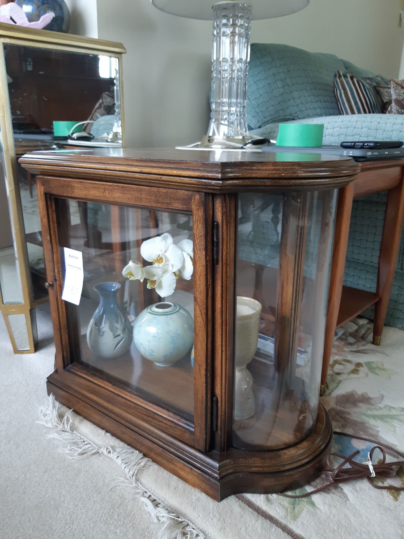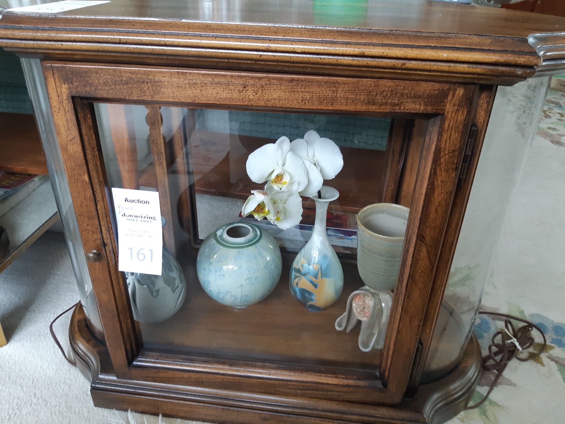 Curio side cabinet 25x 13x21 contents not included. In excellent condition pick up 11 am