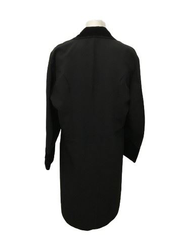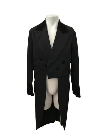 Custom-made circa 1950s tuxedo tailcoat with velvet material trim and velvet material buttons and velvet cuffs.