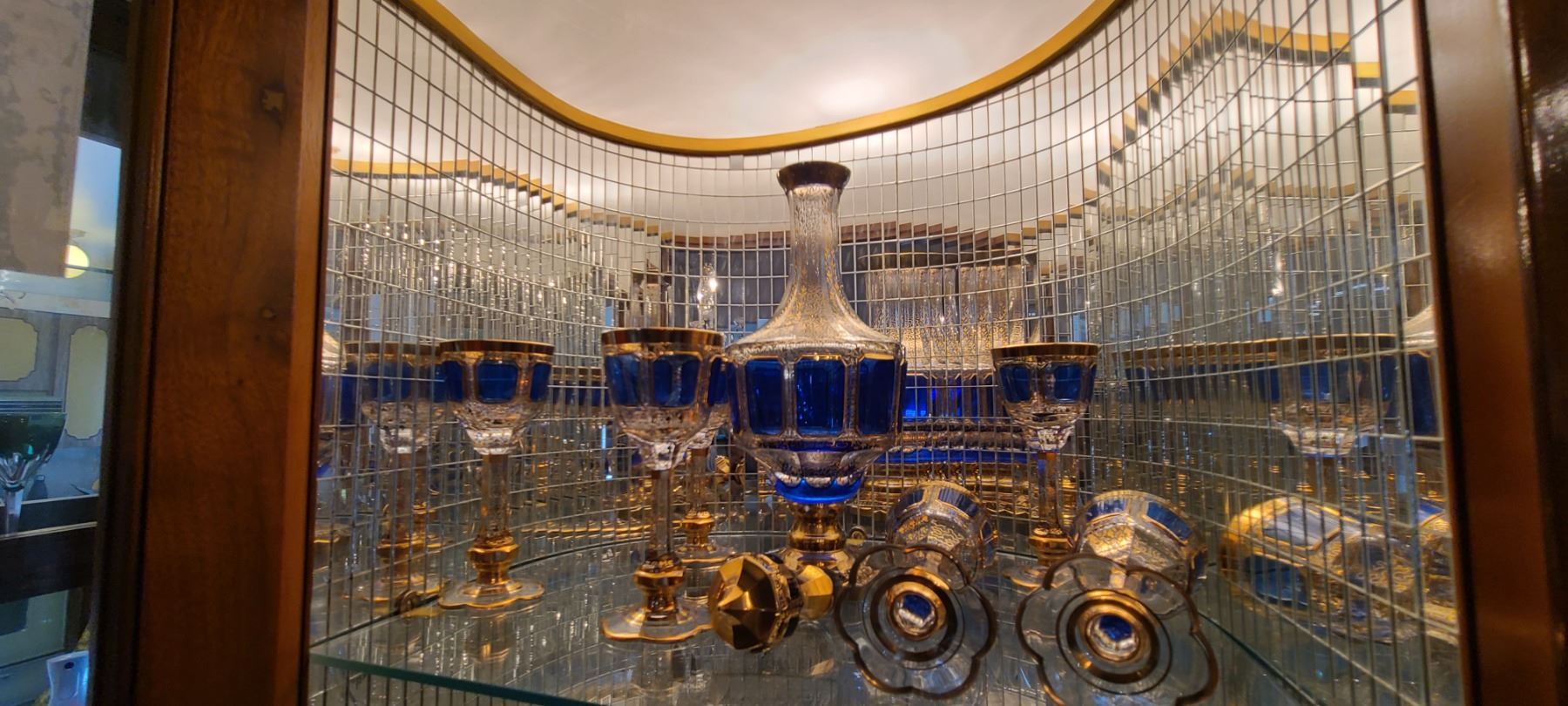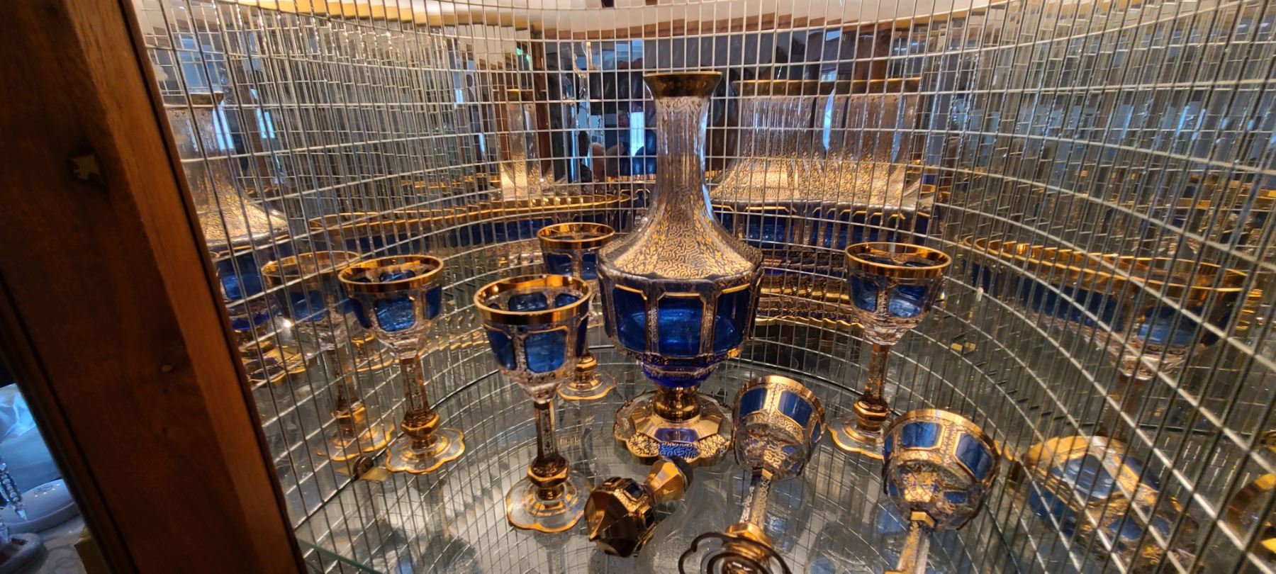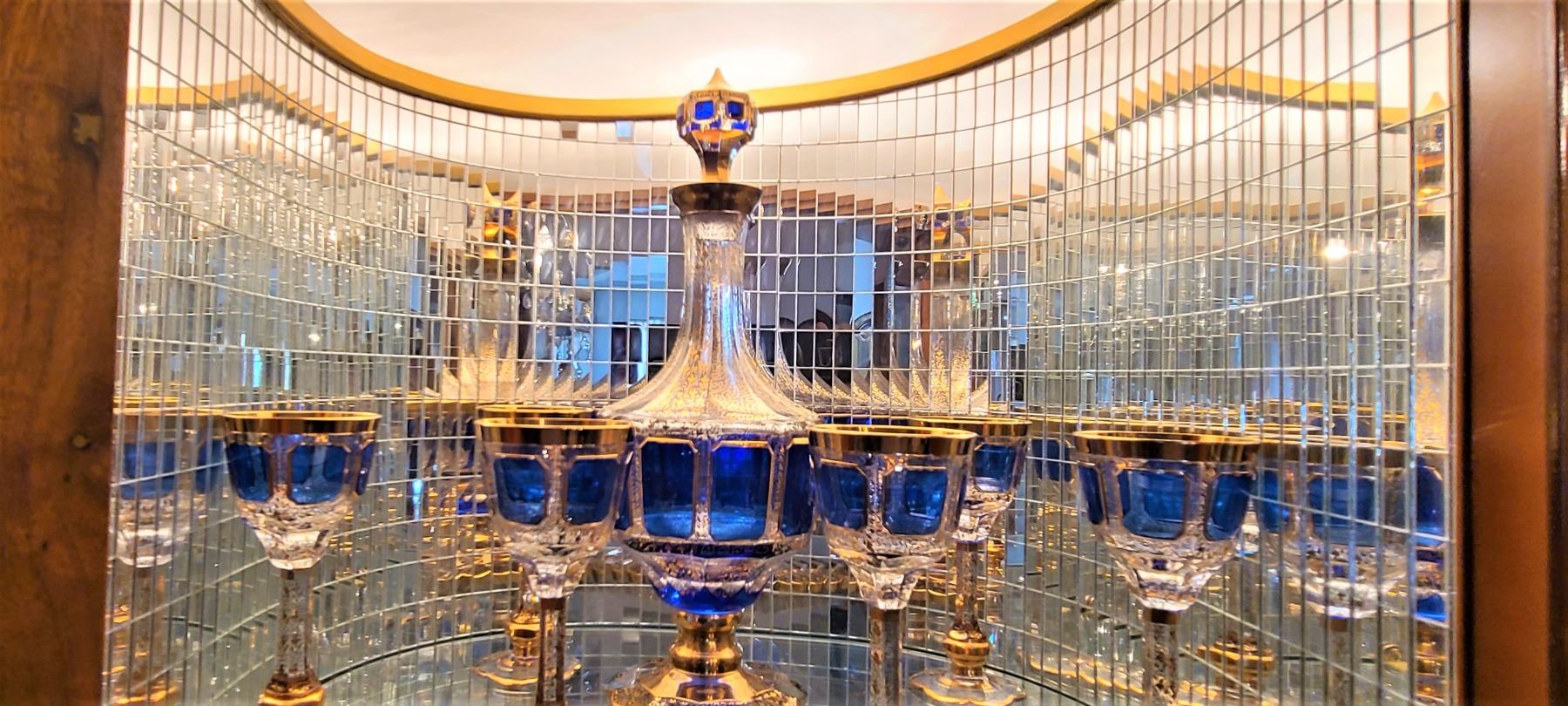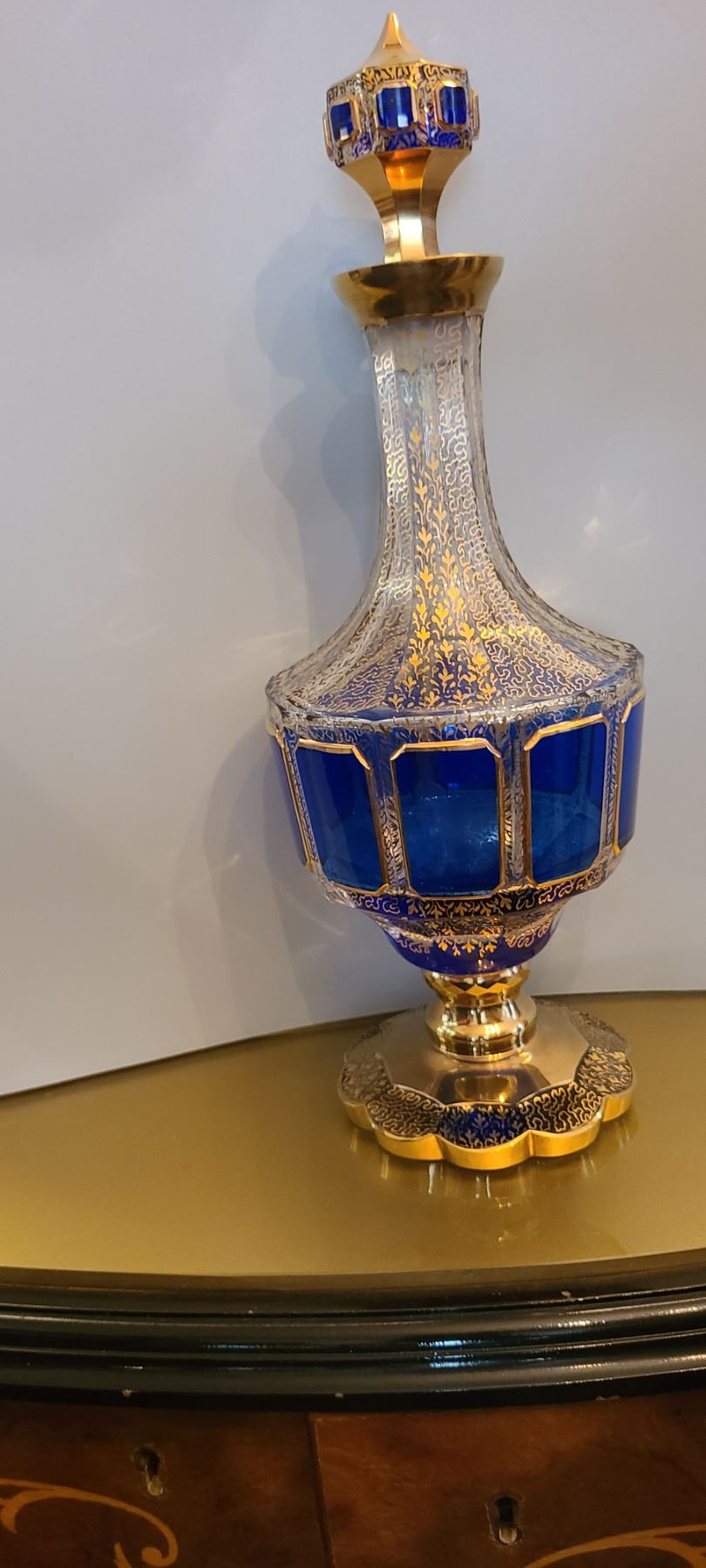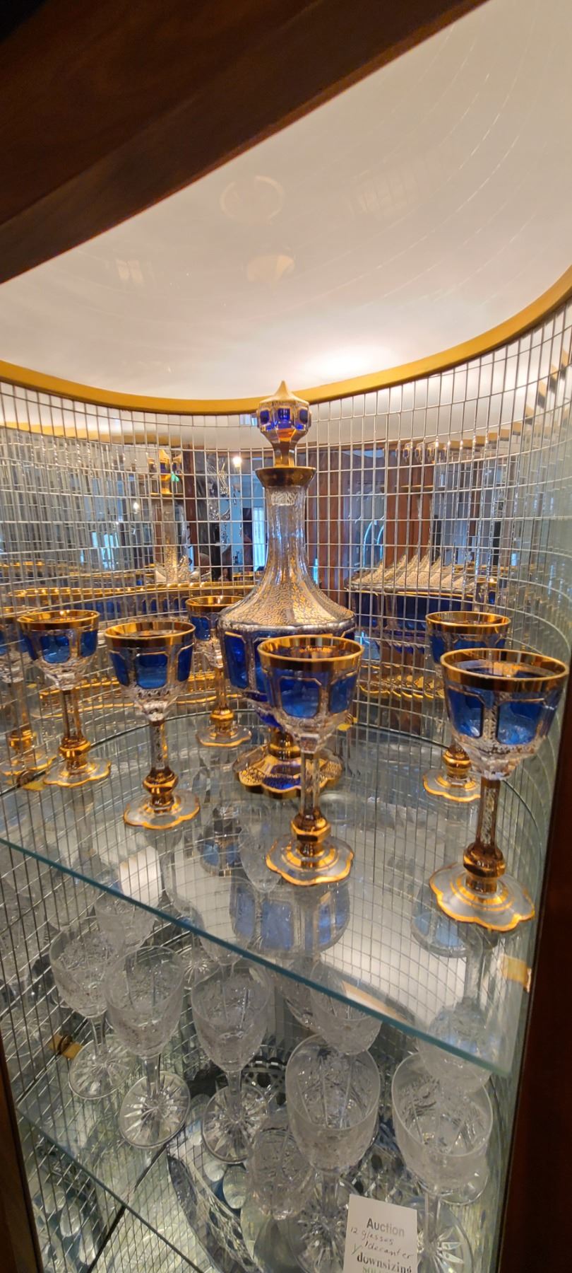 Cobalt blue decanter and 6 glasses. Bring packing material. Pick up 9-10