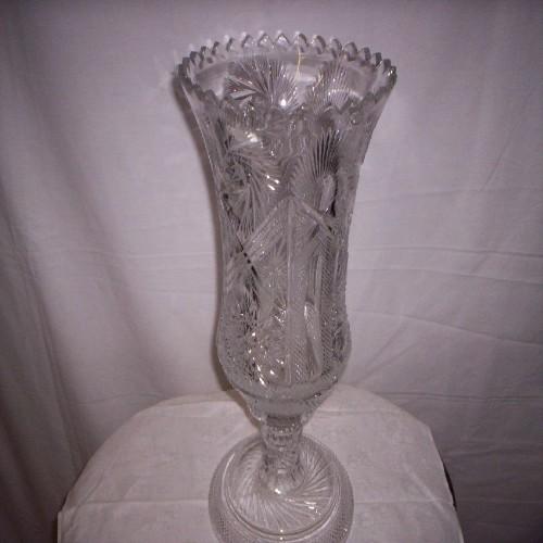 Cut glass footed vase 17" tall signed