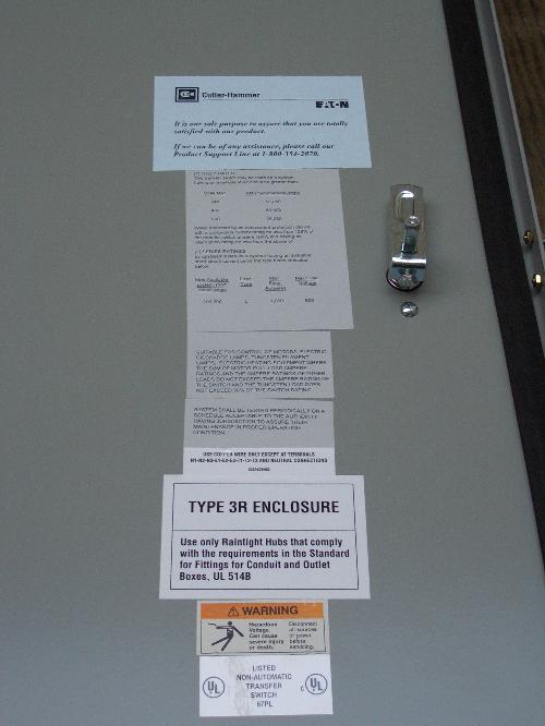 Cutler-Hammer Transfer Switch Equipment- 30-1,000 amperes, Cat. No. ATVIKDA30300XSU- minimum bid $750 (98)