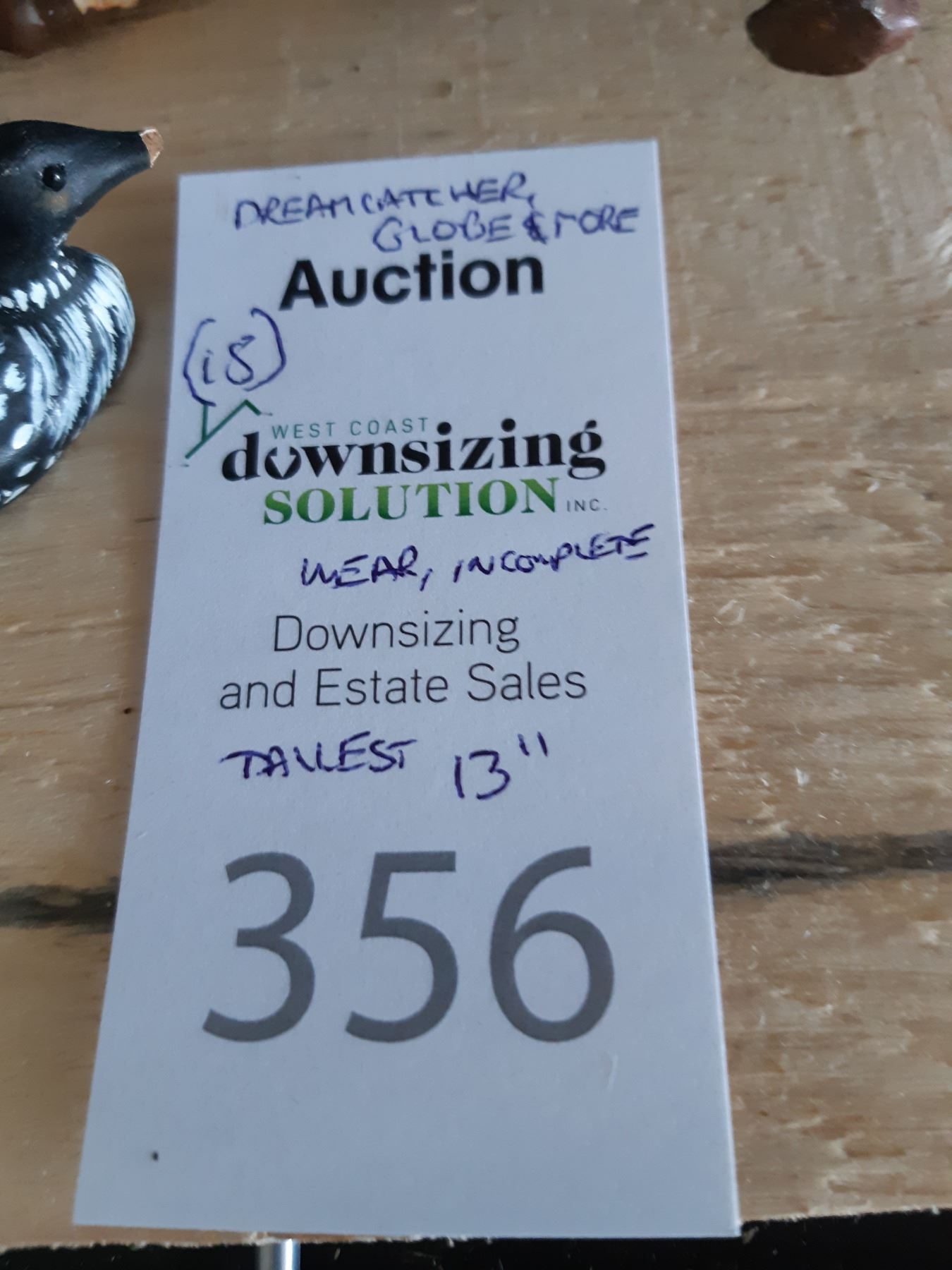 Globe, Dream Catcher, figurines and more Tallest 13" Bring packing materials and pickup at 9 am
