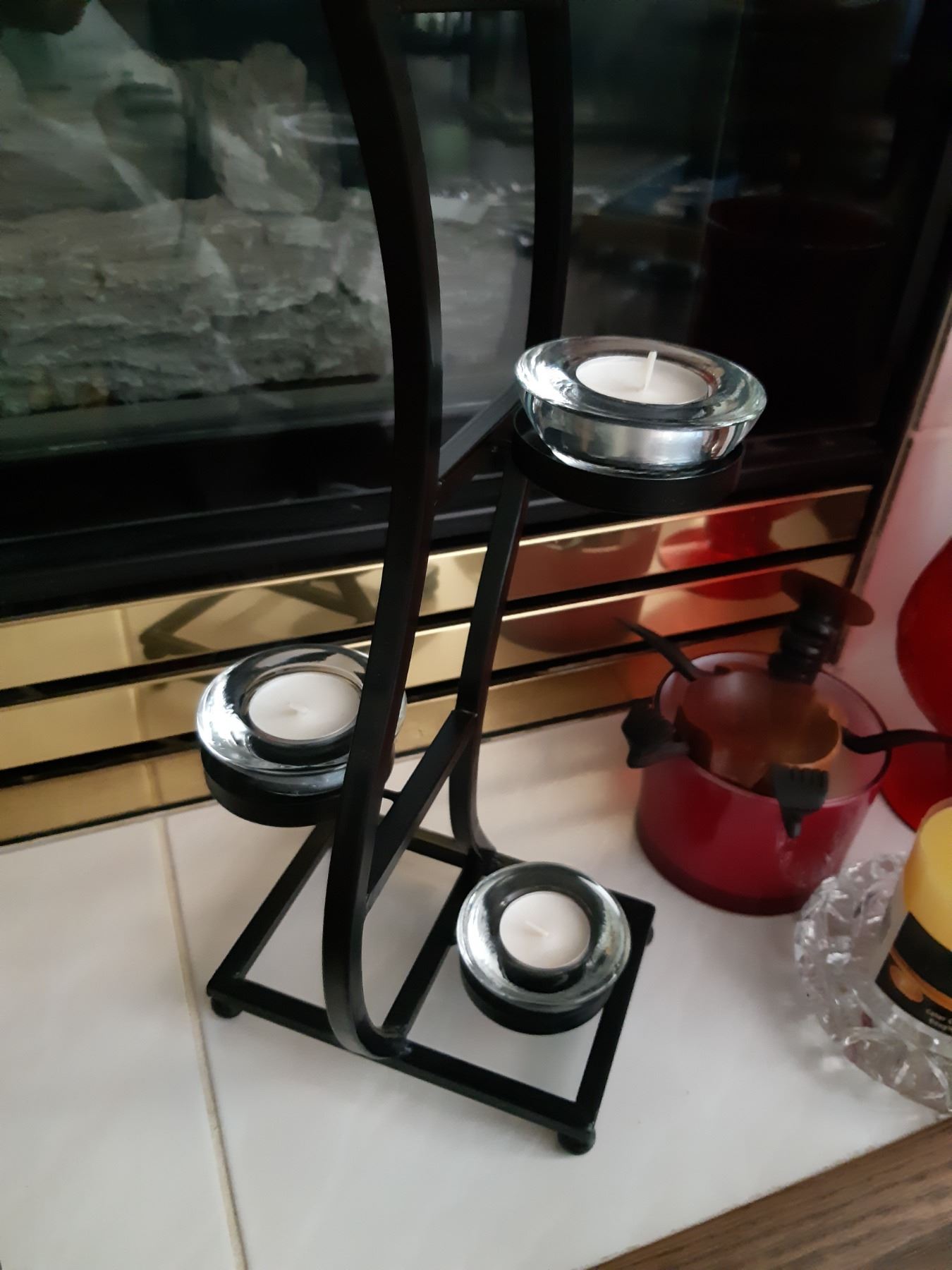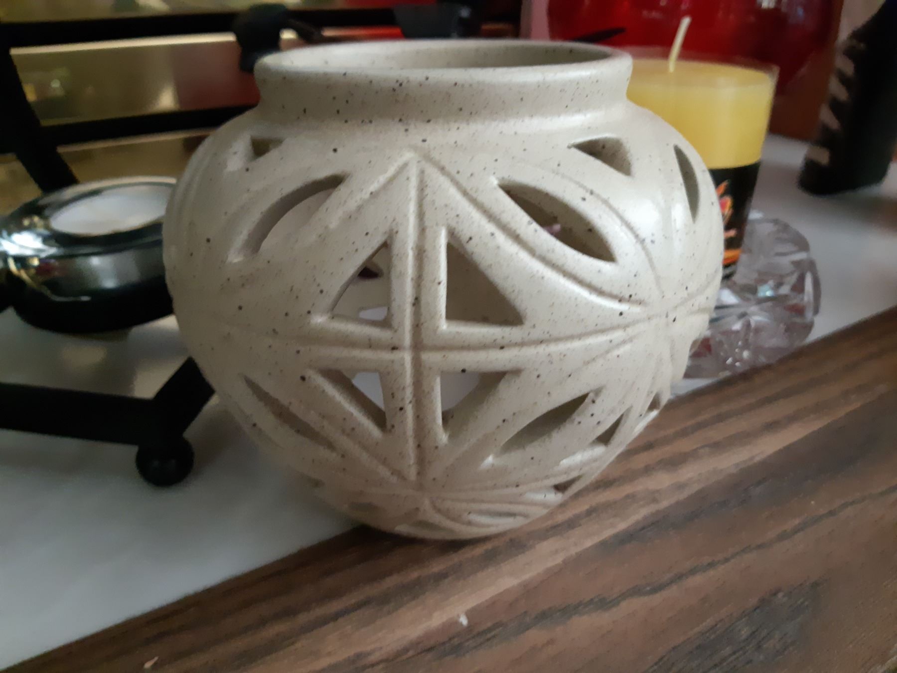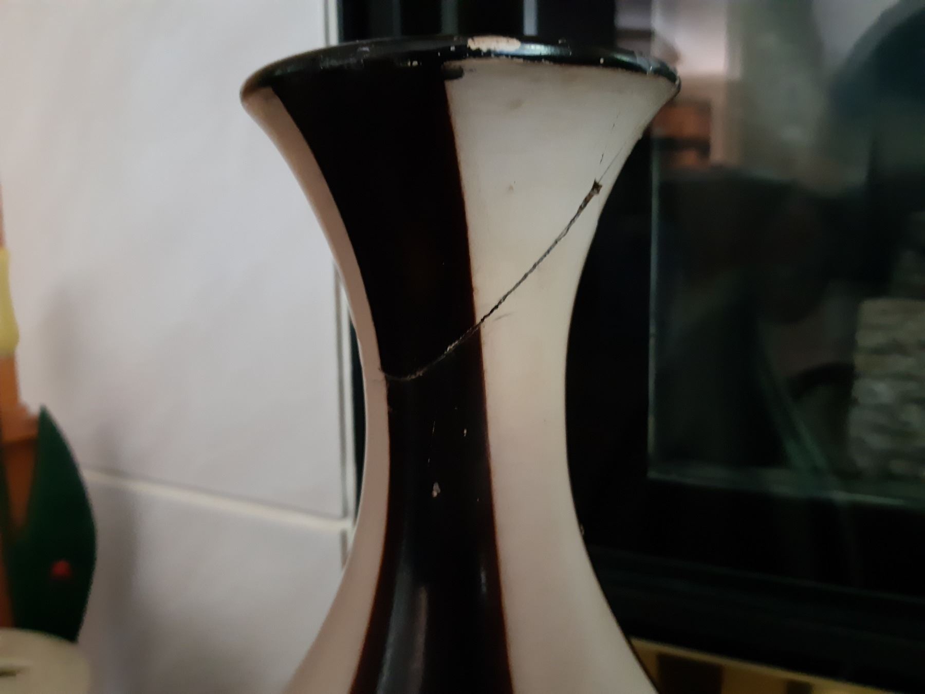 Assortment of decorative items, note the white and brown vase has been repaired. Glass flower candle holders, and more. Bring packing material and pickup at 9 am