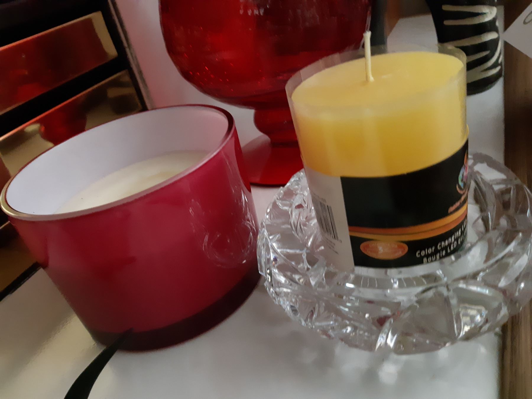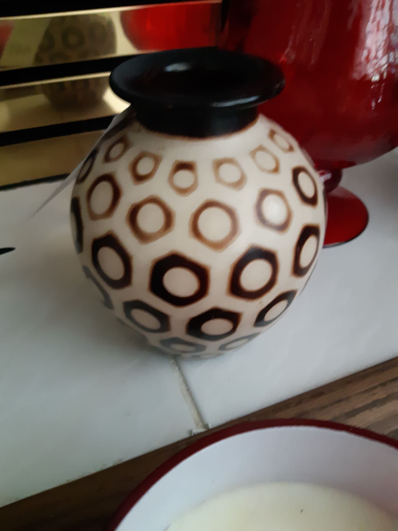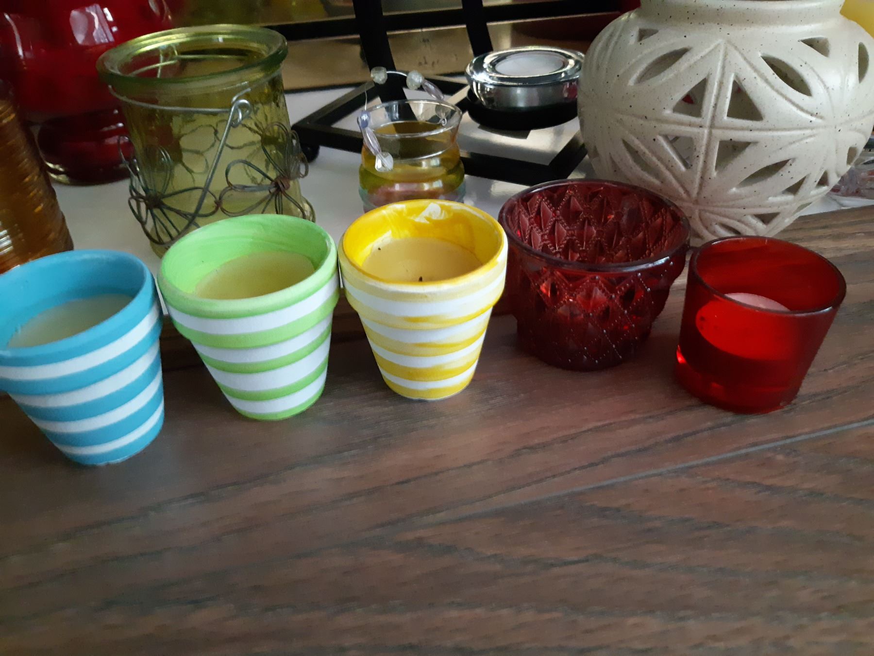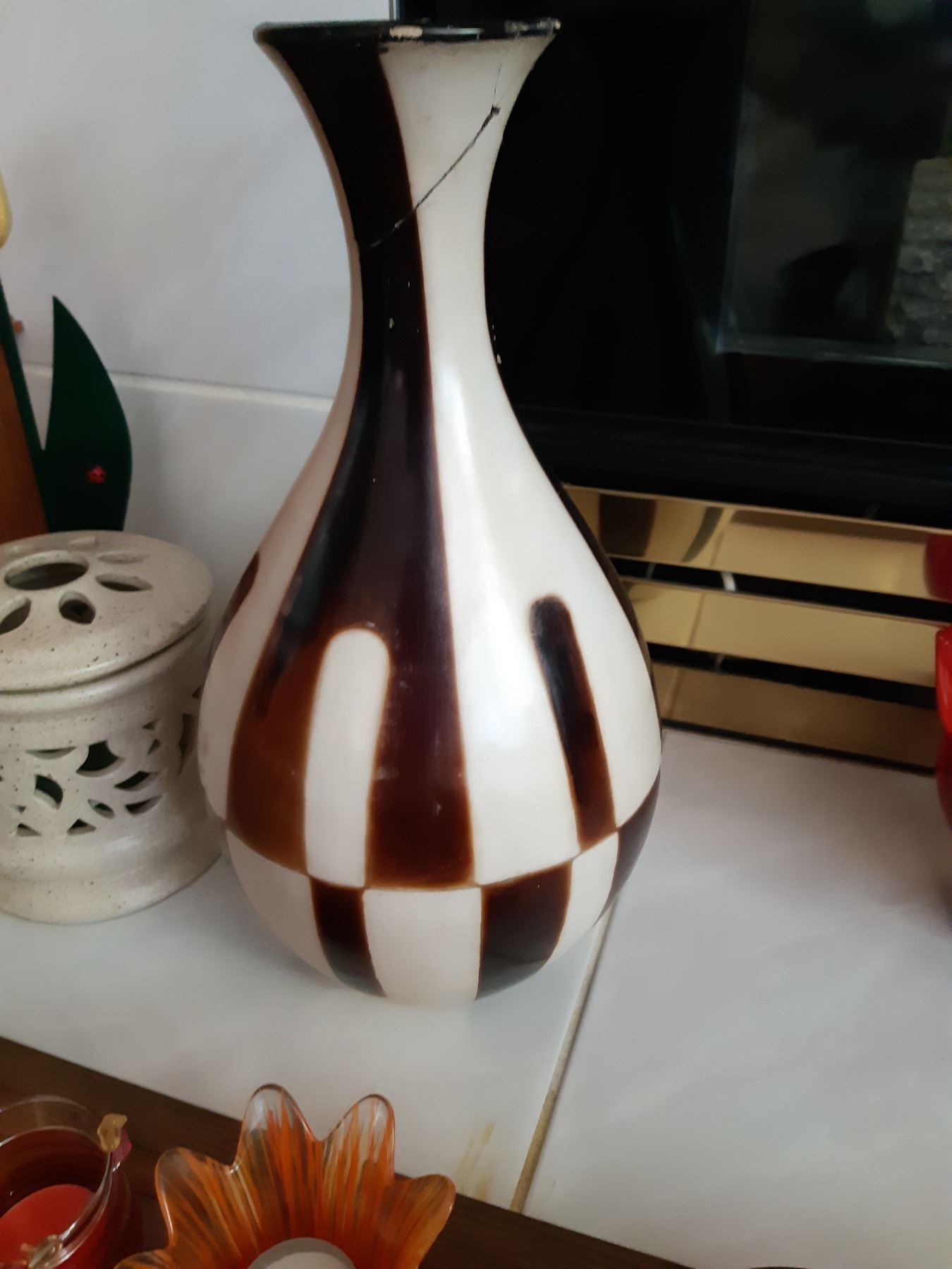 Assortment of decorative items, note the white and brown vase has been repaired. Glass flower candle holders, and more. Bring packing material and pickup at 9 am