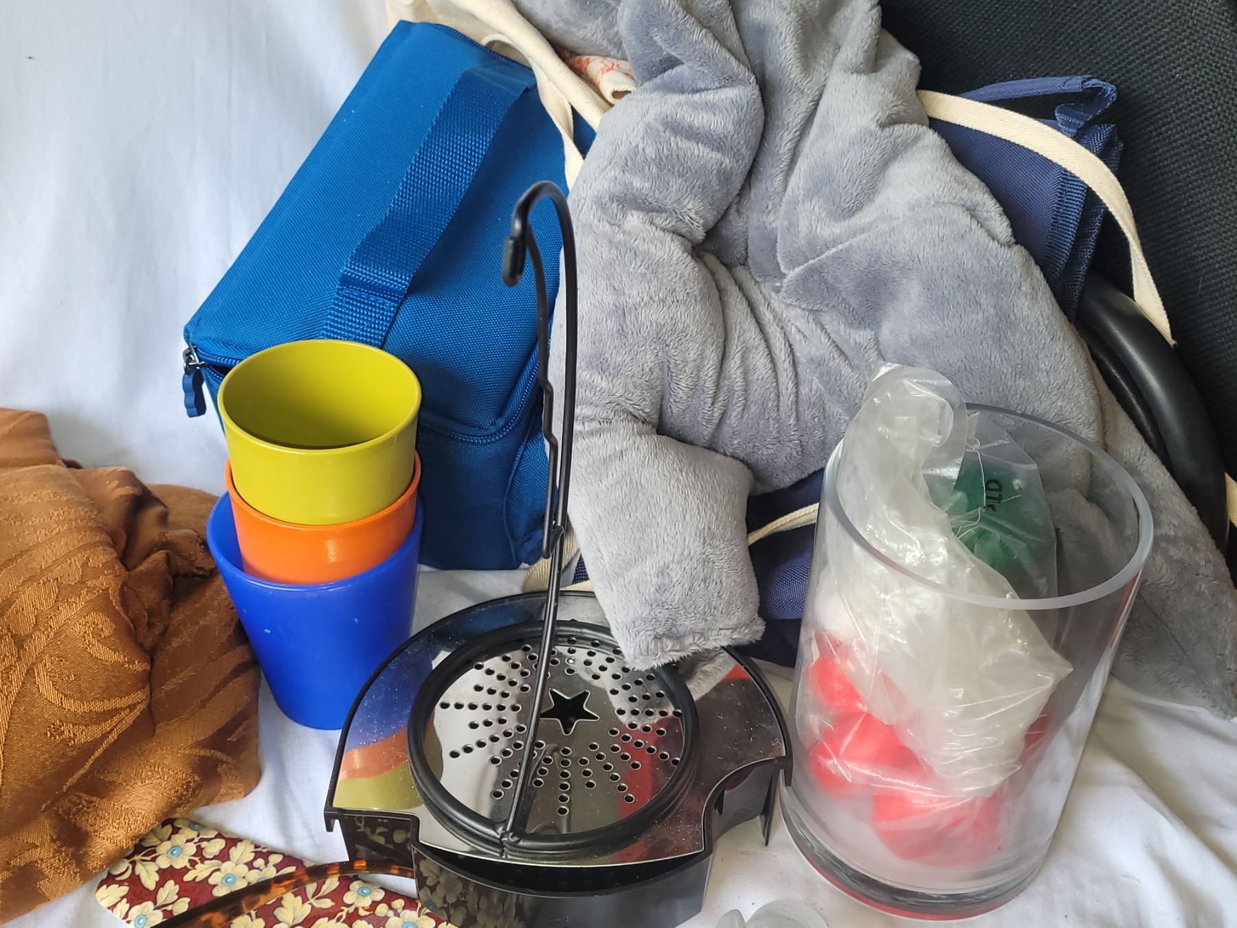 Pair of dining room chair covers, glass top tea caddy, neck & shoulder heat bag and more. SC 2 Pickup at 9