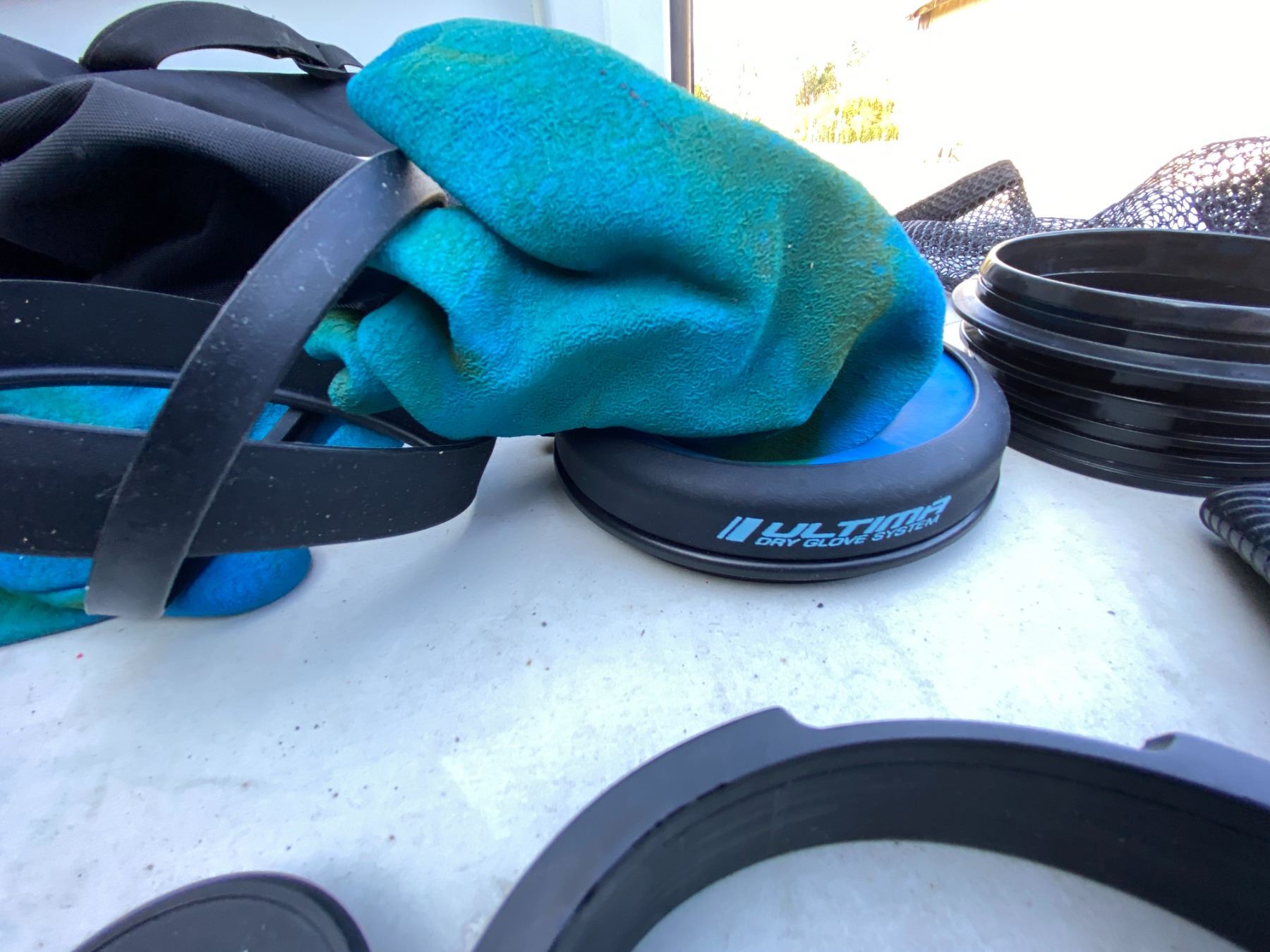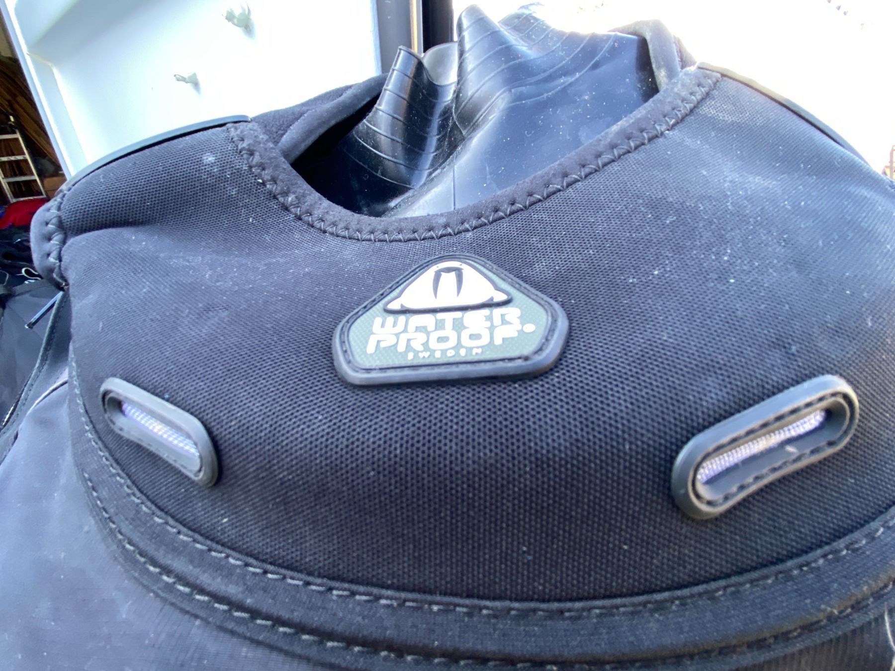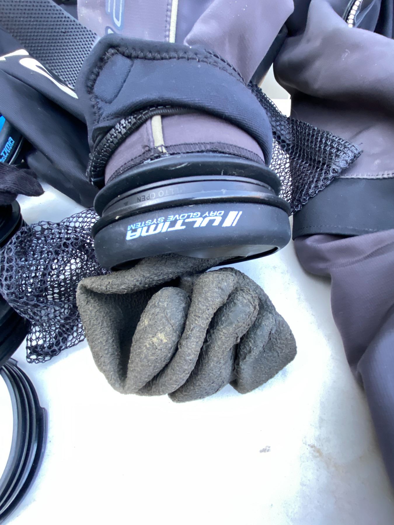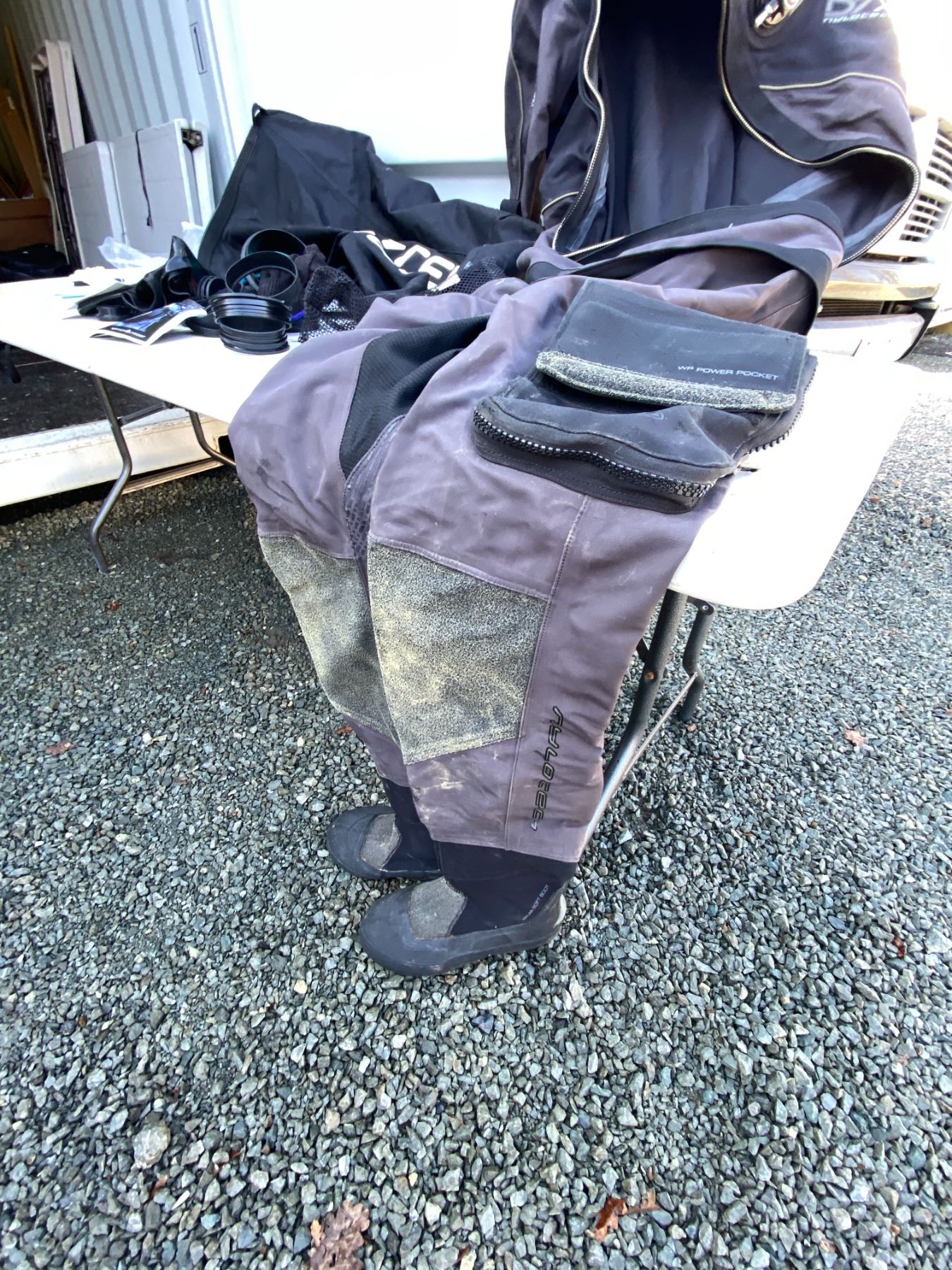 Water sport bag includes, Waterproof D7X nylotech Dry Suit with dry glove cuffs installed. Size Medium-Large, Spare cuffs and gloves. Pickup at 11 am