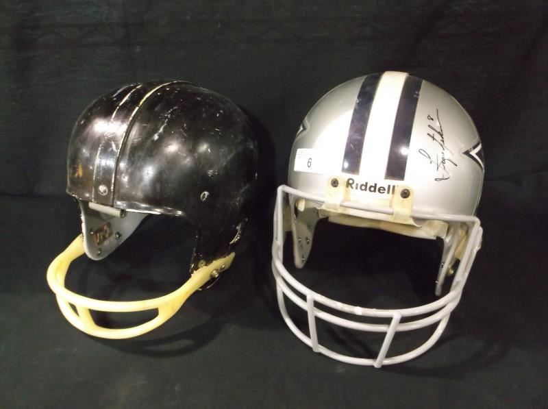 DALLAS COWBOYS HELMET, SIGNED BY # 8 TROY AIKMAN & VINTAGE BLACK FOOTBALL HELMET