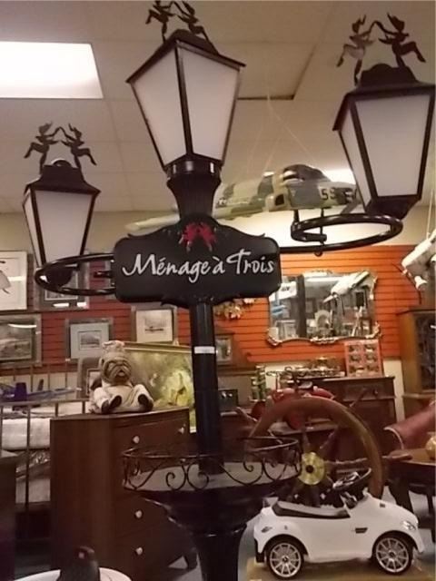 DECORATIVE VINTAGE STREET SIGN - MENAGE A TROIS - 8'TALL - ASSEMBLED