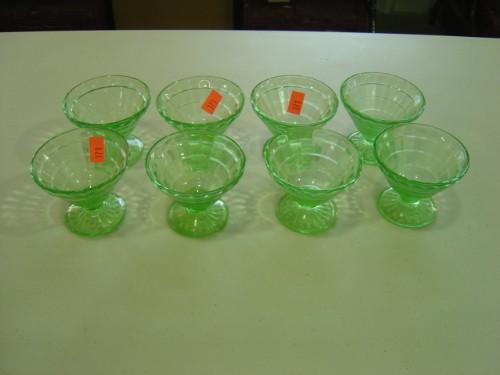LOT OF 8 GREEN DEPRESSION GLASS SHERBETS