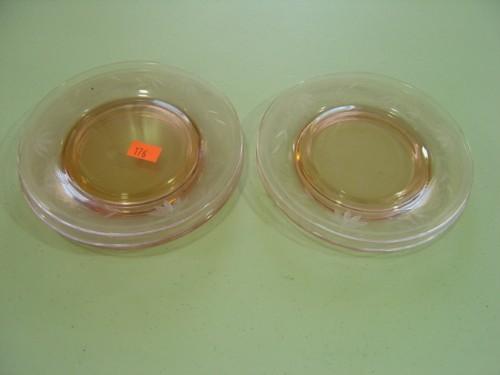 LOT OF 5 PINK DEPRESSION GLASS 7 1/4 INCH SANDWICH PLATES WITH ETCHING