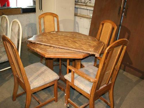 DINING ROOM TABLE WITH 4 ROLLING CHAIRS<BR>41" X 41" X 30" TALL