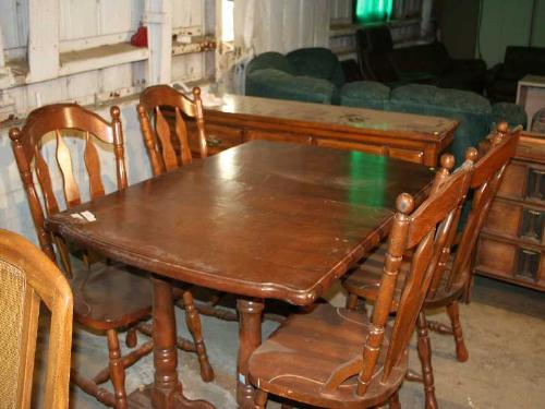 DINNING TABLE 29" X 36" , DARK WOOD FOUR HIGH BACK CHAIRS.