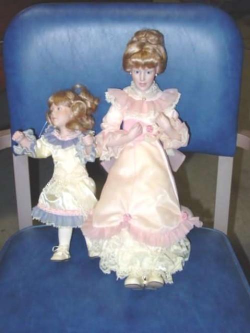 Mother's Loving Touch 2 doll set 1989 porcelain & cloth mother is 16.5" child is 11.5"