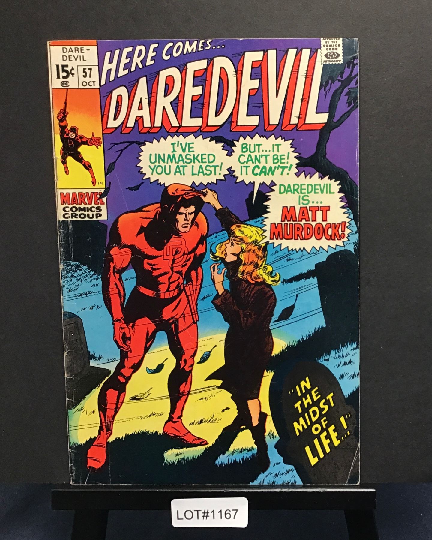Cover Gene Colan, Script Roy Thomas, Identity revealed to Karen Page, "Death" of Deaths Head
