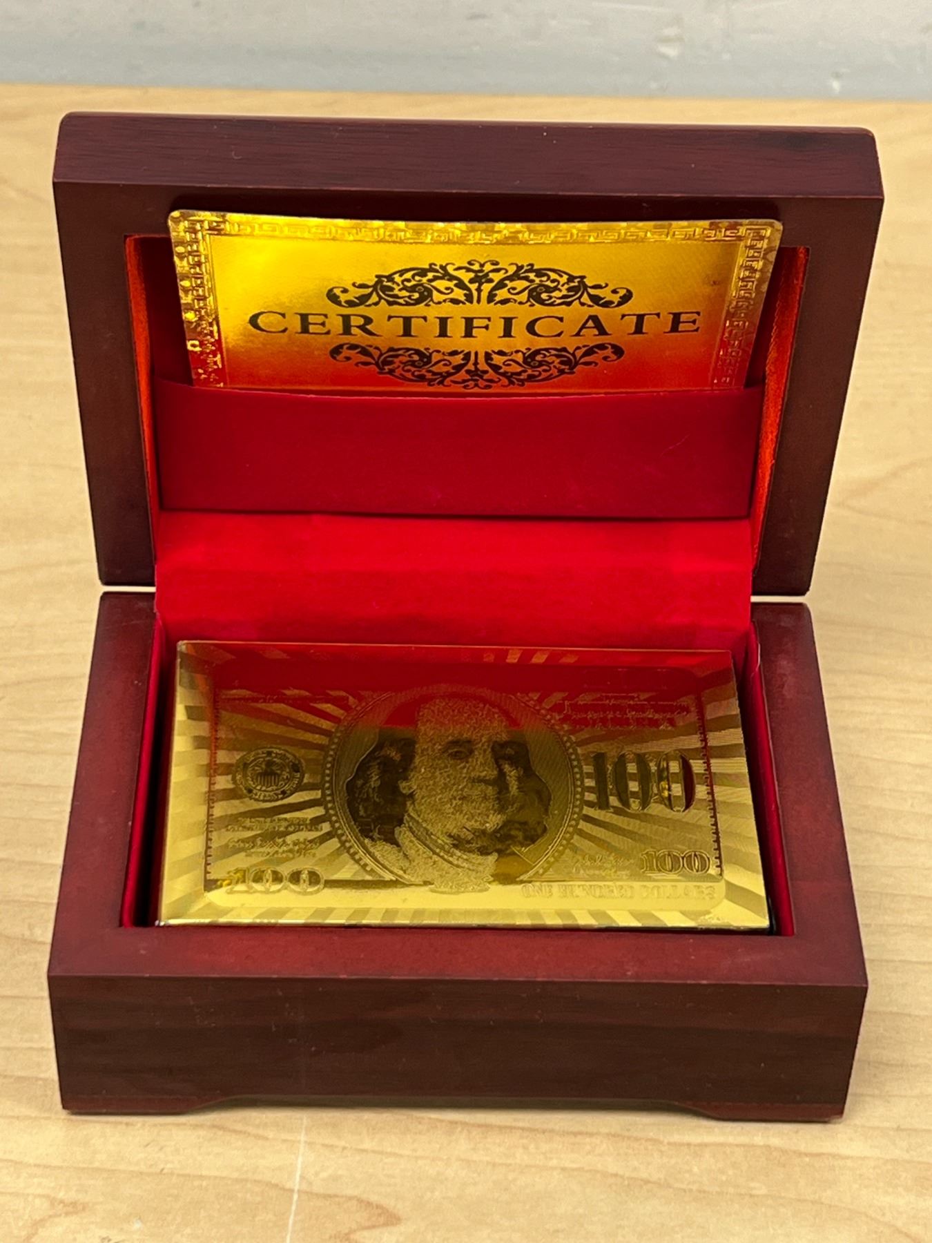 Deck of Gold Foil Playing Cards with Wood Box - complete - see all photos