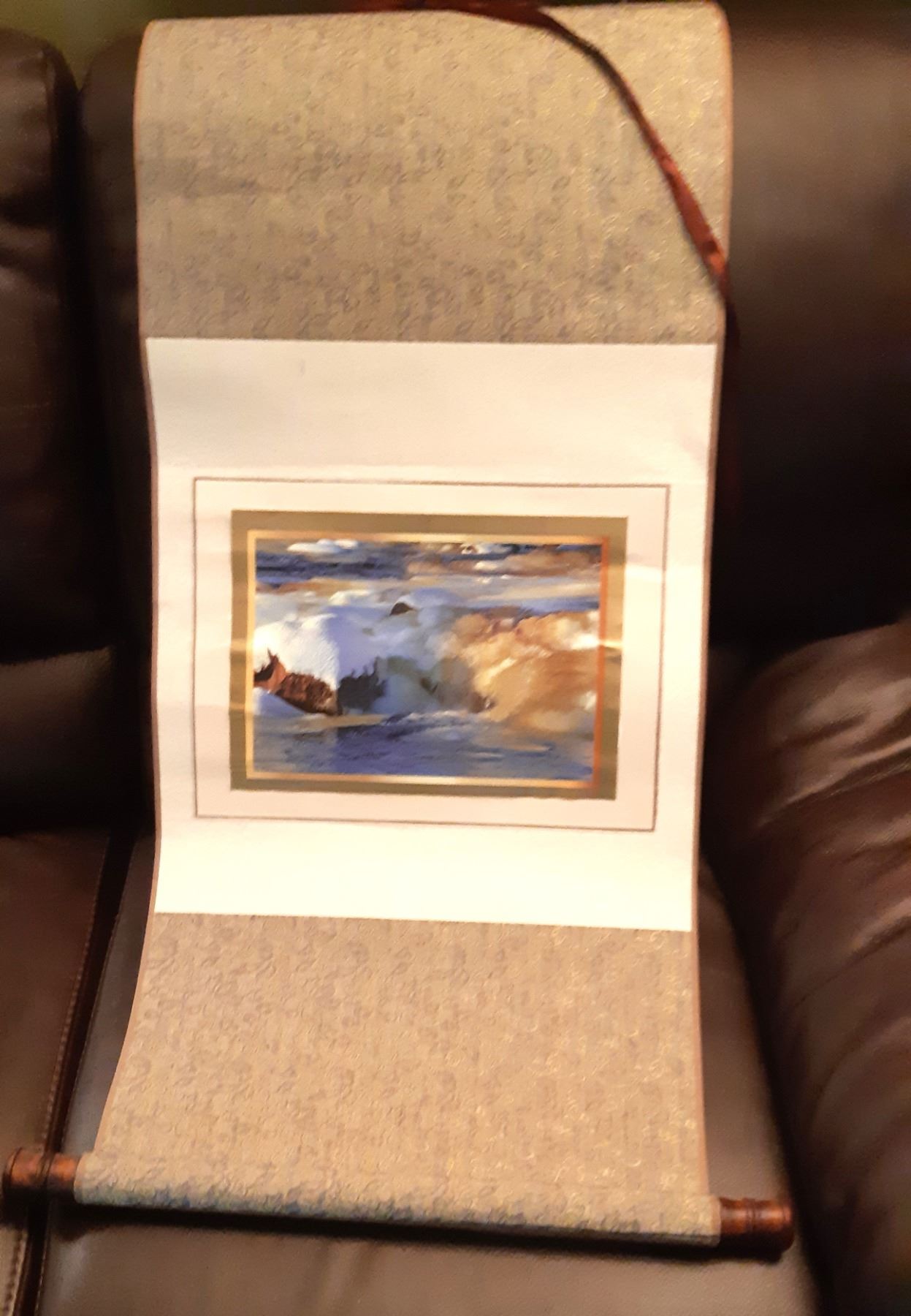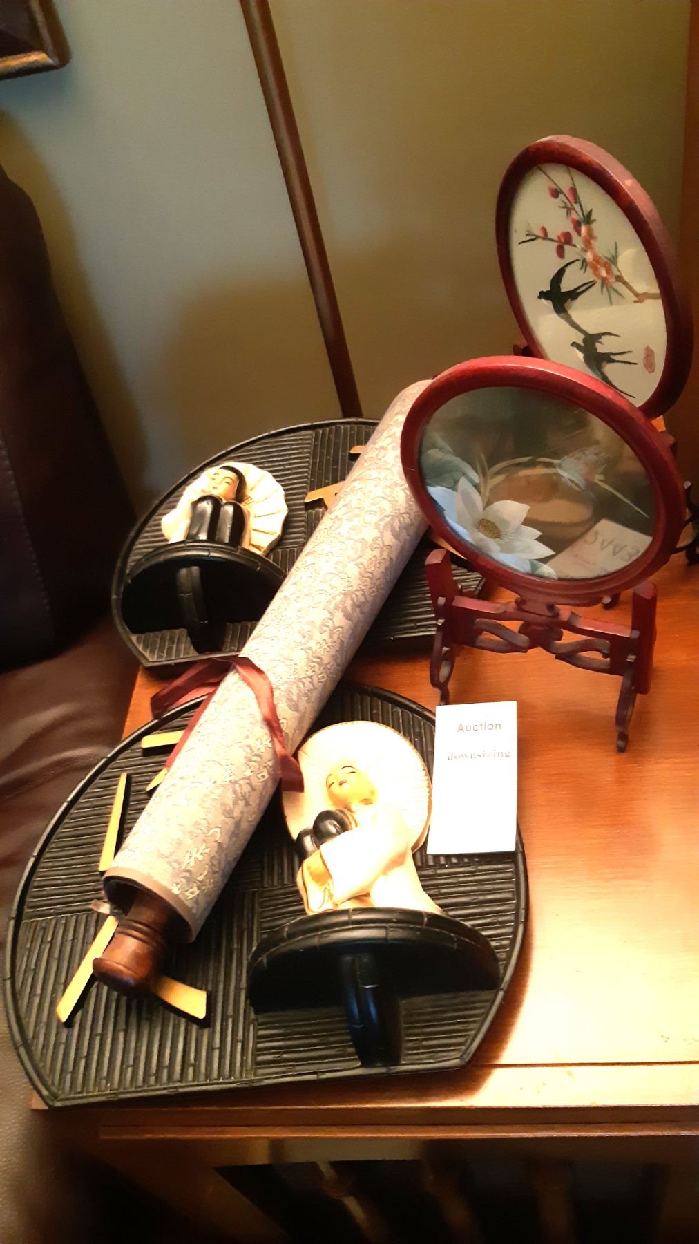 Décor and metal floor lamp , scroll hanging print Pickup at 9 am