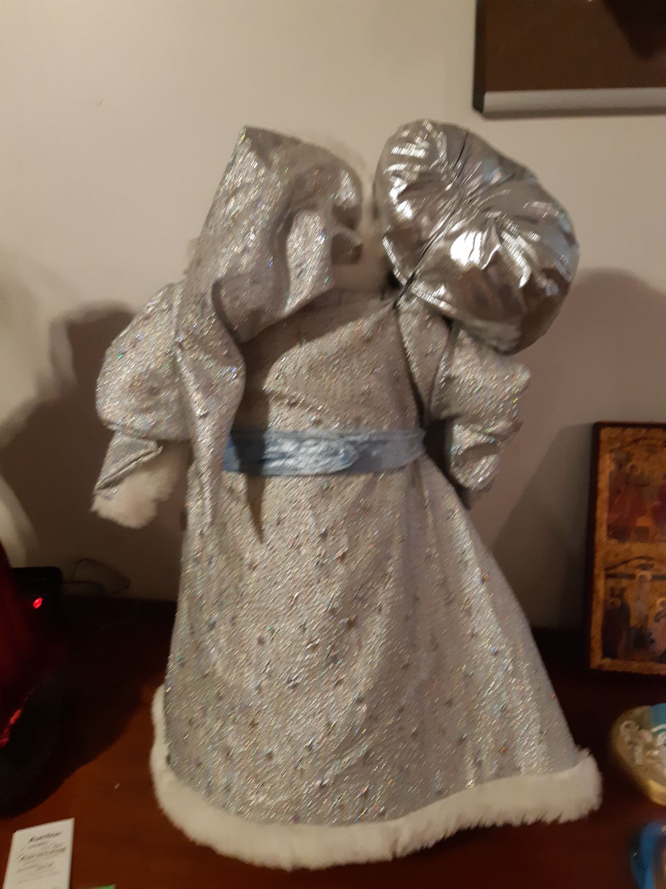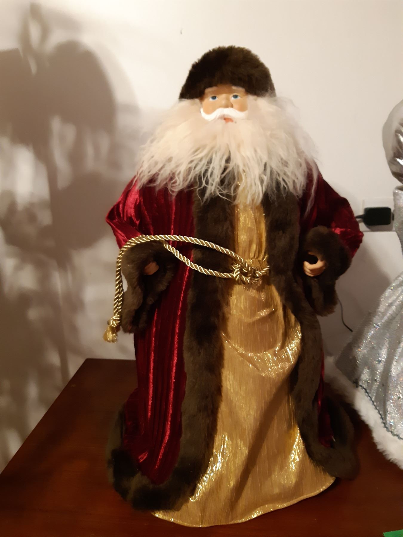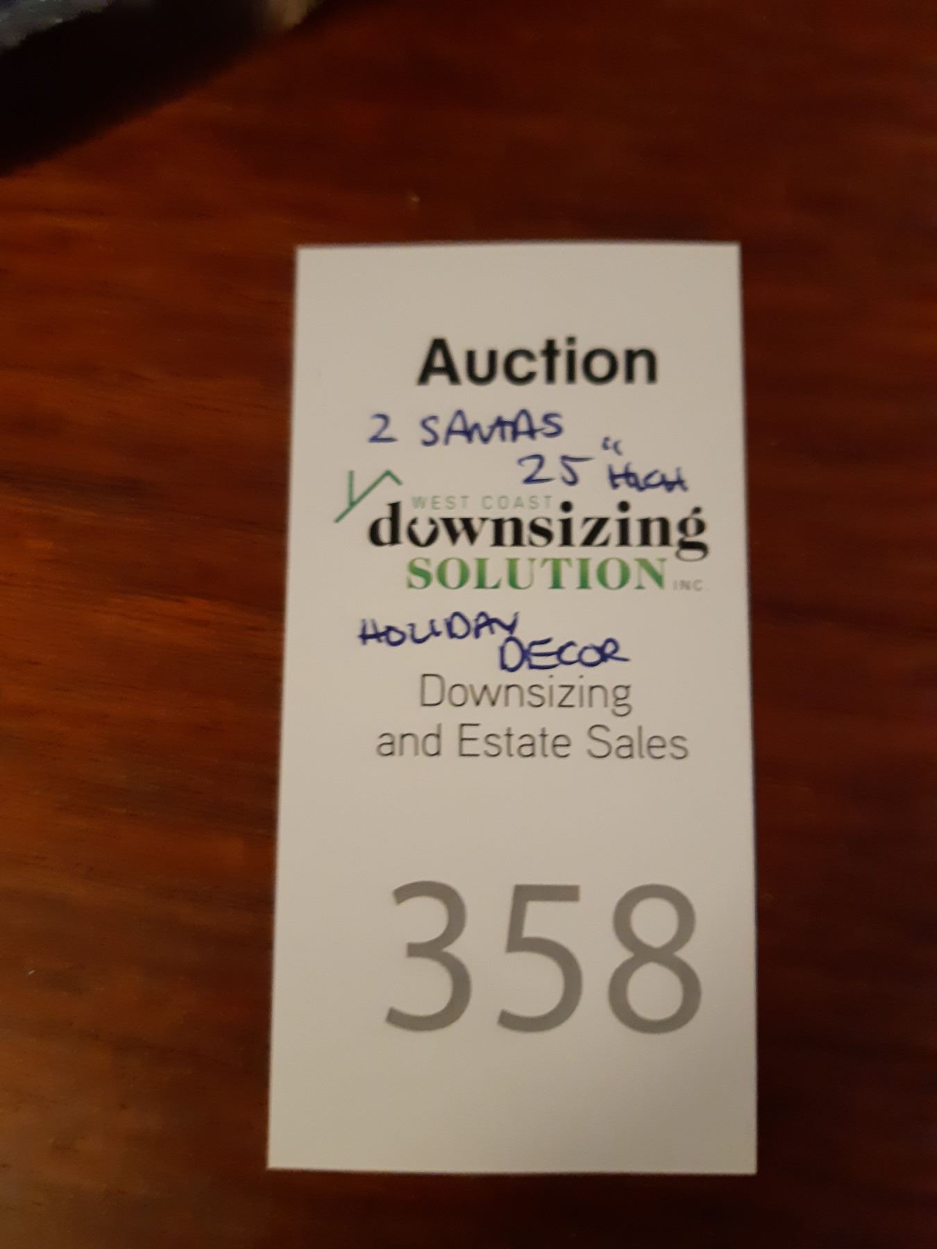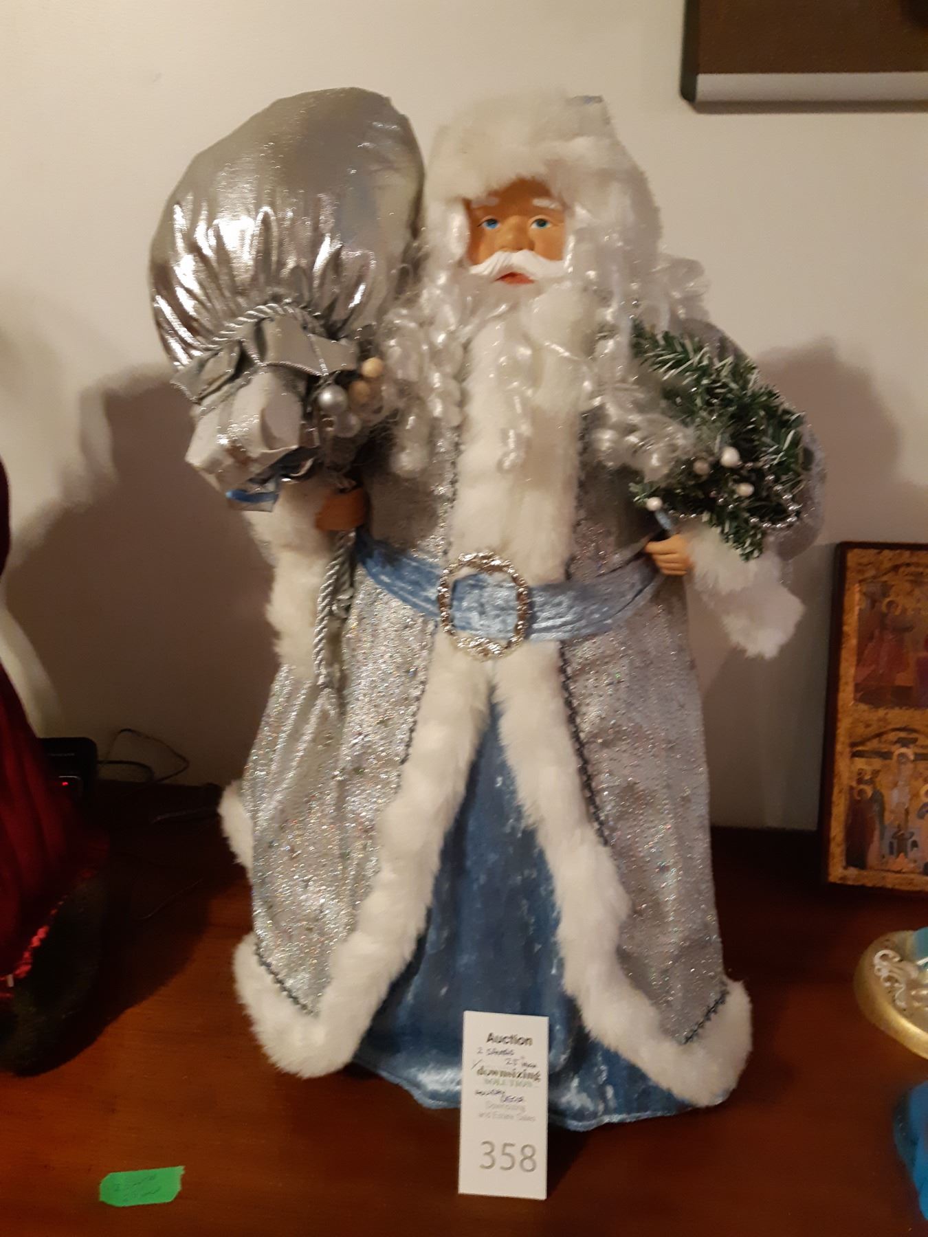 Santas 25" tall, x2. Ceramic faces, Birks miniature pewter clock and Religeous plant of tha Passion of Christ certified pickup at 9 am