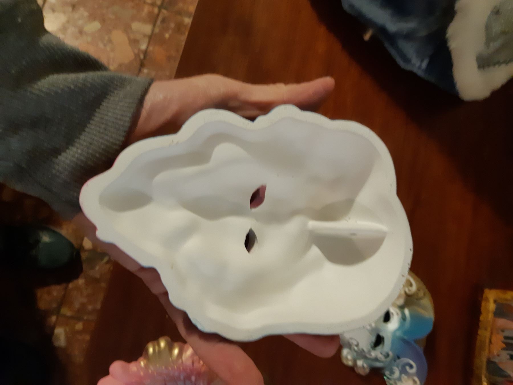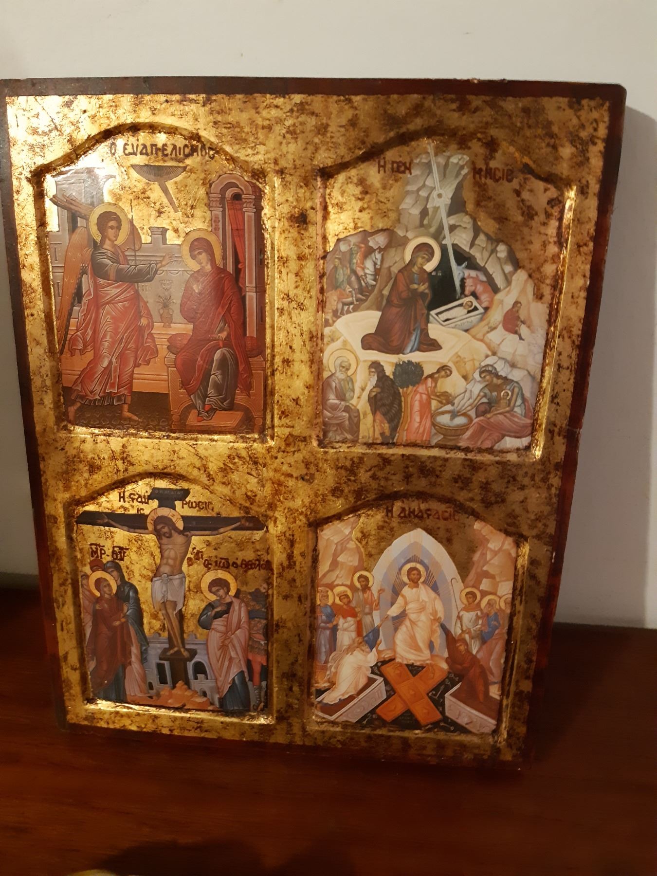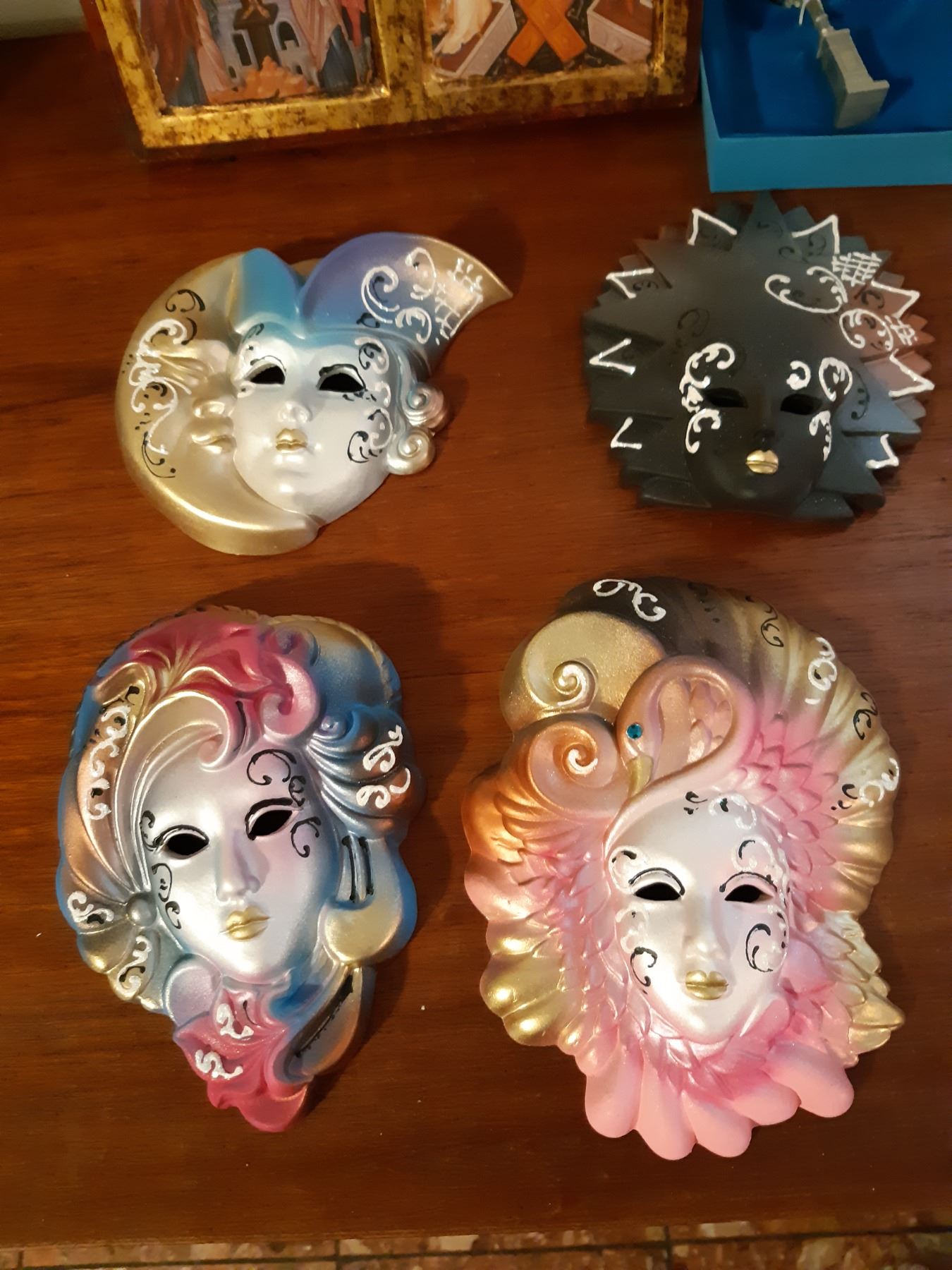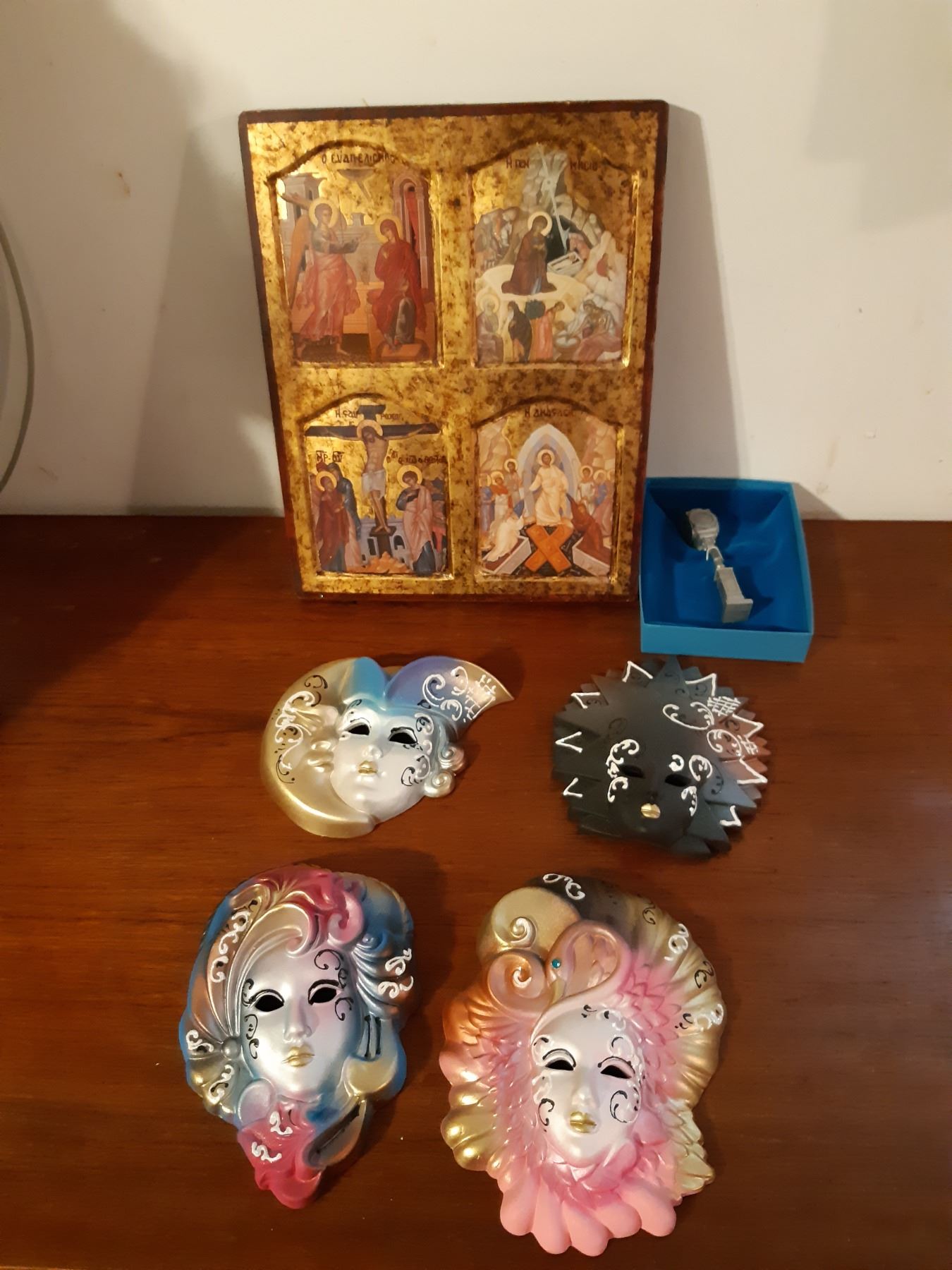 Santas 25" tall, x2. Ceramic faces, Birks miniature pewter clock and Religeous plant of tha Passion of Christ certified pickup at 9 am