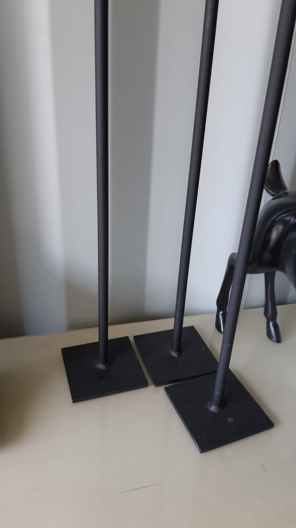 2 reindeer 18" composite material. 3 candle stands largest 37". Xmas decorations. Puckup at 9 am
